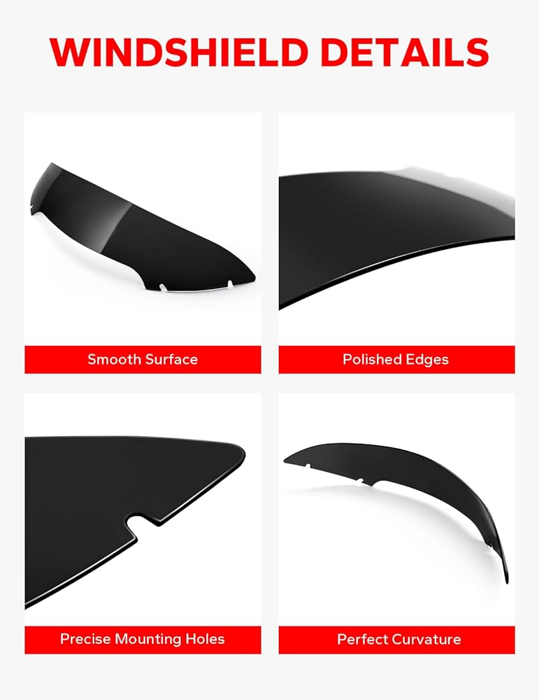 ارتفاع الزجاج الأمامي: 5 بوصات (القياس من مركز الترباس الأوسط) استمتع بمناظر واسعة ورائعة من خلال هذا الارتفاع المناسب أثناء الركوب.