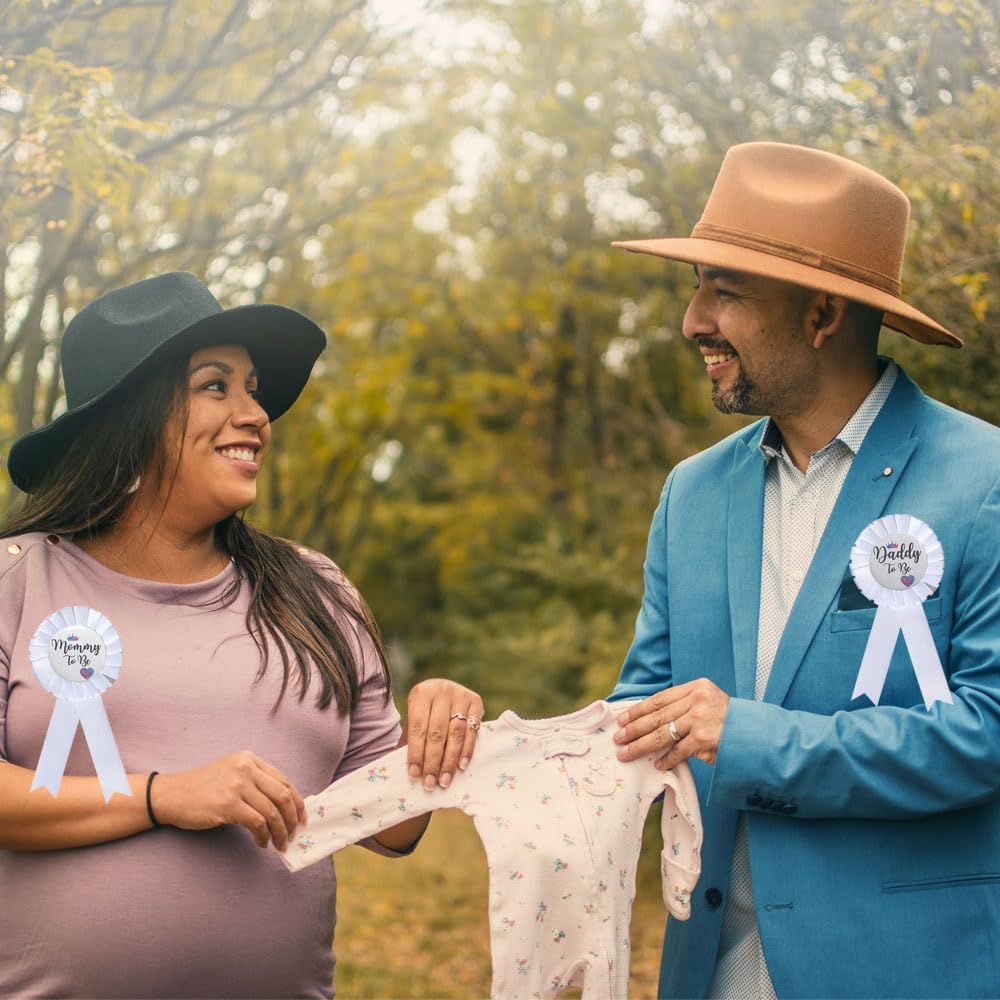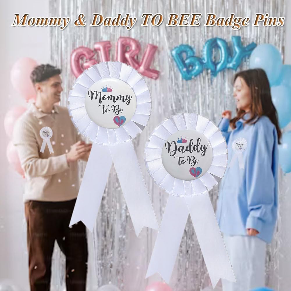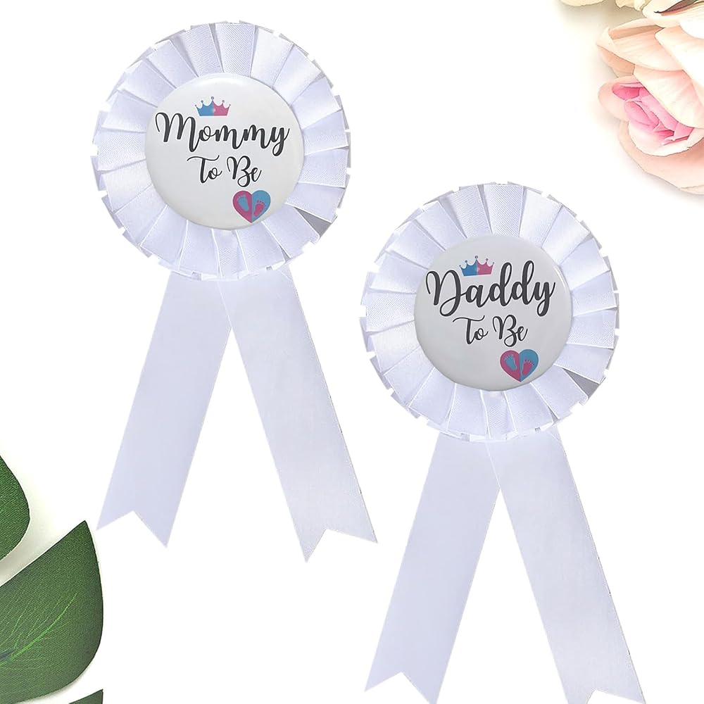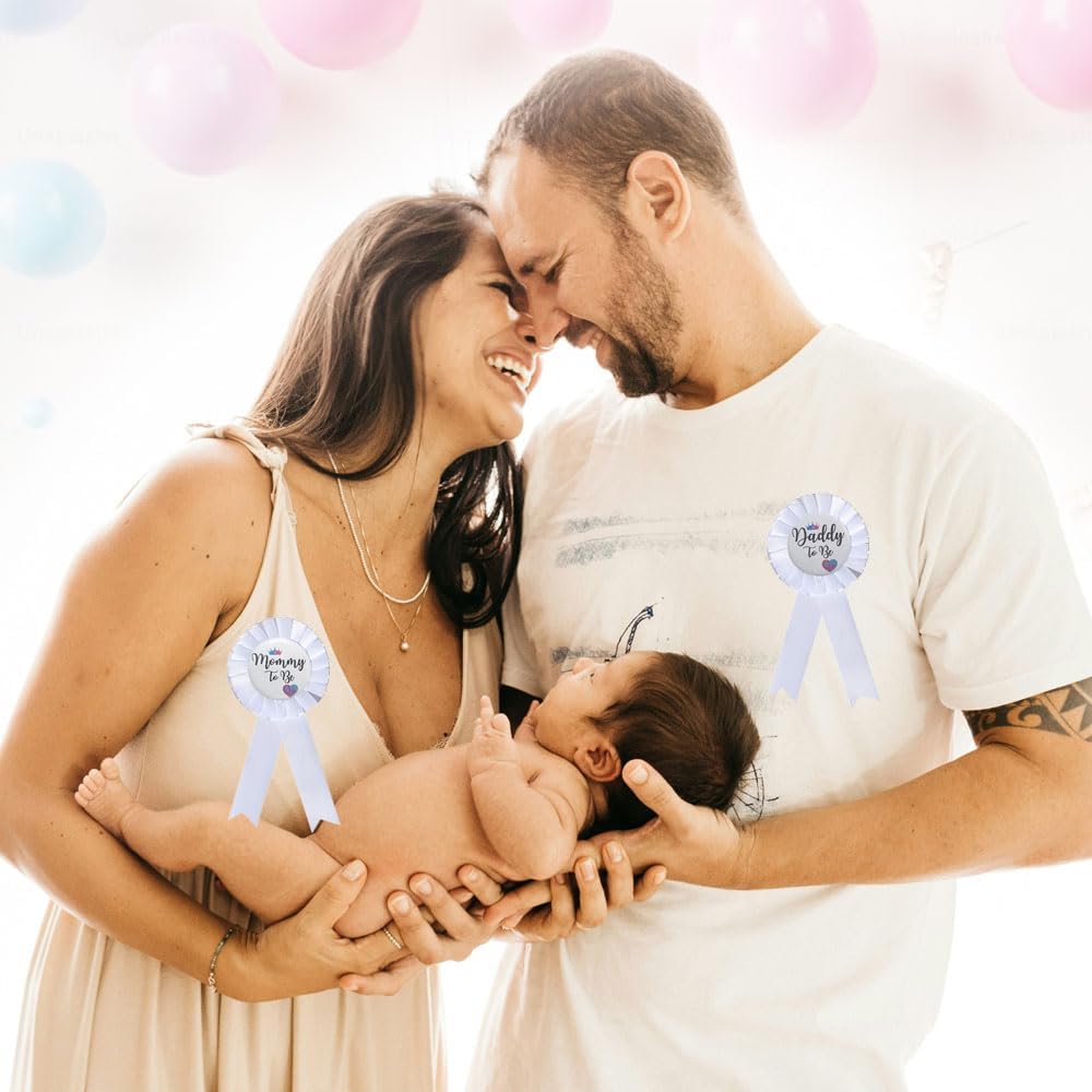 Designed with neutral colors, these gender reveal decorations are suitable for both baby boys and baby girls, The Mommy To Be Tinplate Badge Pin proudly displays the words Mommy To Be, while the Daddy To Be Button Pin lets everyone know who the proud father-to-be is,