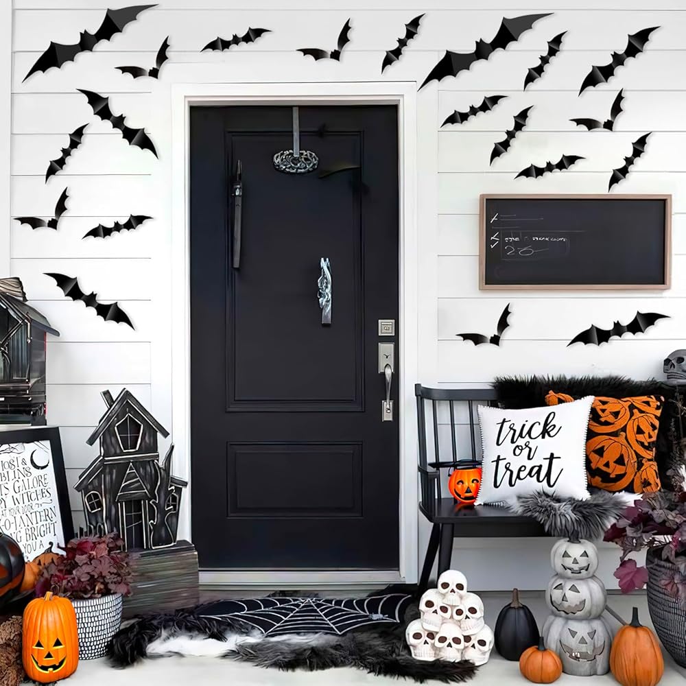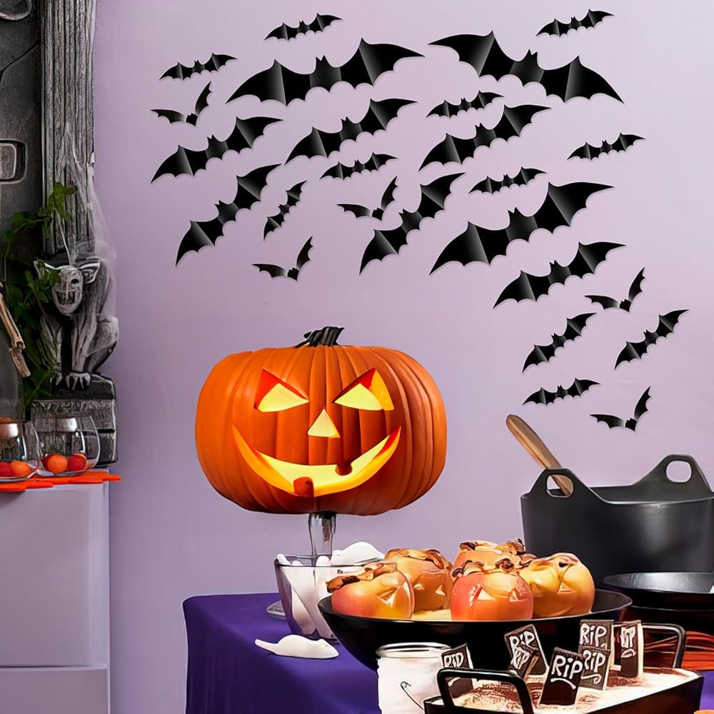 ديكورات الهالوين الأنيقة: ديكور الحائط الخفافيش الخاص بنا هو الخيار الأمثل لرفع مستوى ديكور الهالوين الخاص بك. تضيف هذه الملصقات الجدارية الجذابة لمسة مخيفة وساحرة إلى ديكورات منزلك الداخلية والخارجية، مما يمنحك حفلة عيد الهالوين التي لا تُنسى، وهي قطعة لا غنى عنها لديكورات حفلات الهالوين.