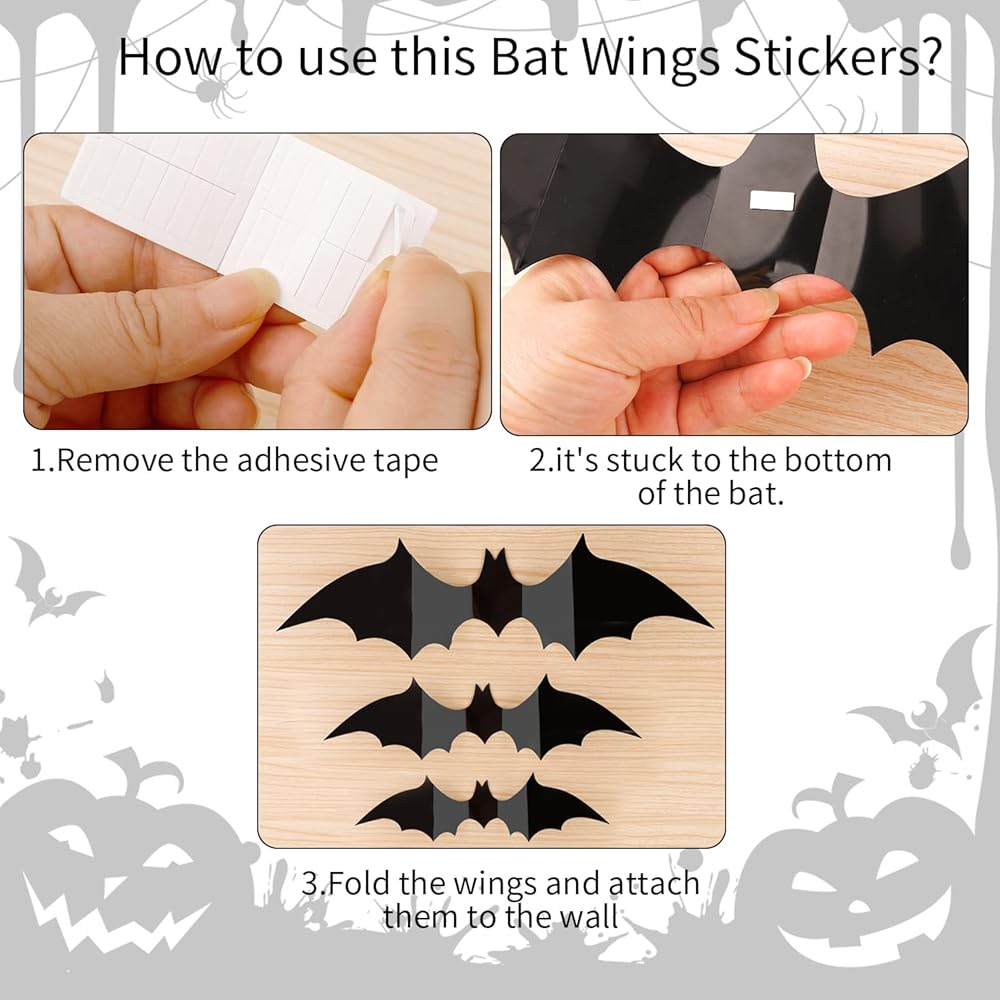 تطبيقات متعددة: ملصقات الخفافيش ثلاثية الأبعاد التي تصنعها بنفسك هي ديكور ممتاز للأبواب والجدران والأسقف والنوافذ والمدافئ ورفوف الكتب والخزائن. إنه مناسب جدًا للهالوين، ومهرجان منتصف العام، وحفلة عشية، ومهرجان الأشباح والمناسبات الأخرى، مما يخلق جوًا مرعبًا. ديكور الخفافيش الخاص بنا هو الخيار الأمثل لمستلزمات حفلات الهالوين.