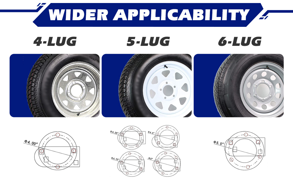 سعة تحميل عالية: تناسب معظم عجلات العروة 4 و5 و6 مع أنماط مسمار يصل وزنها إلى 120 رطلاً.