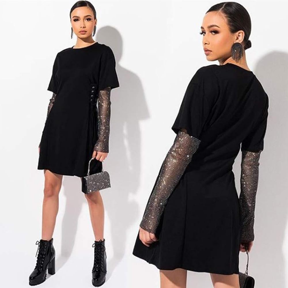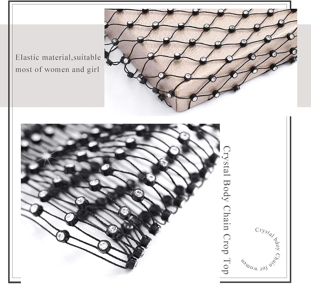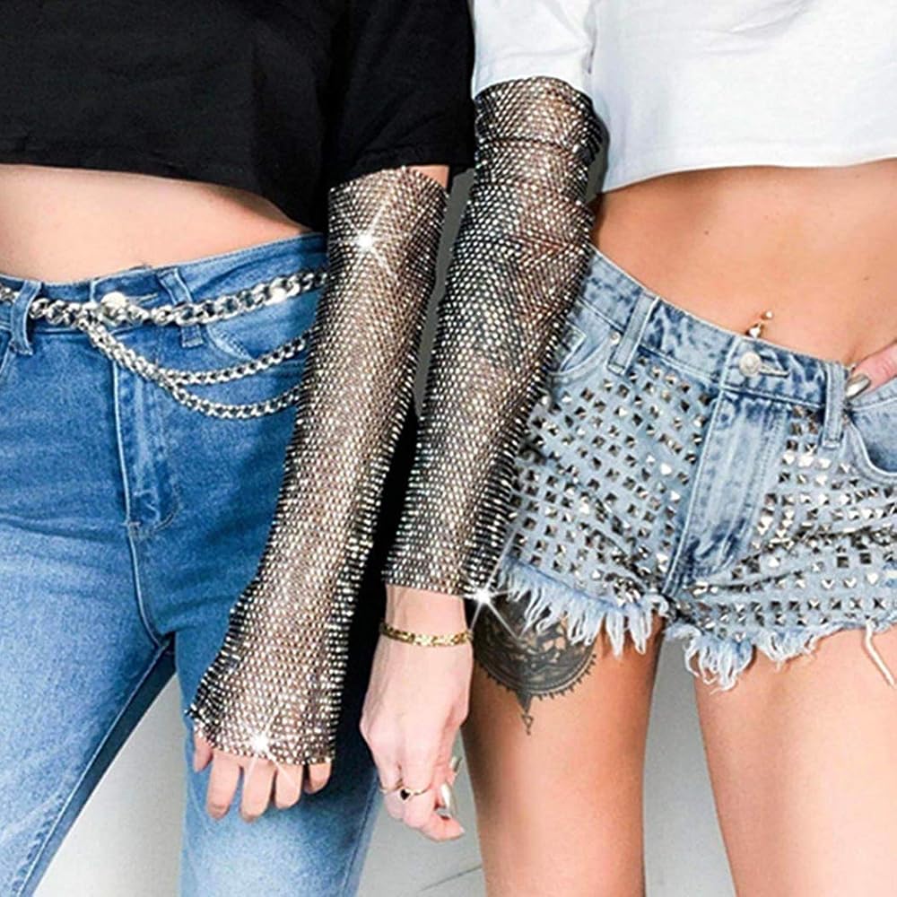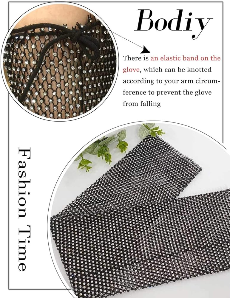 BODIY شبكة أحجار الراين أصابع قفازات سوداء طويلة تمتد شبكة صيد السمك كريستال حزب الهذيان نادي بلينغ زي قفازات الجسم سلسلة مجوهرات للنساء والفتيات (قطع من 2)