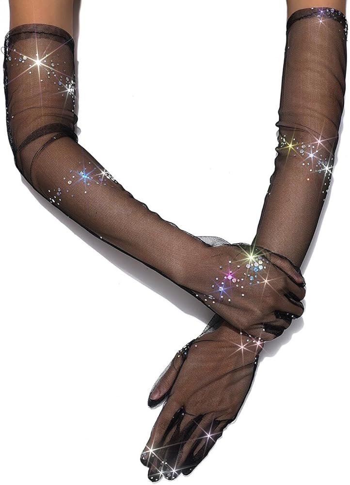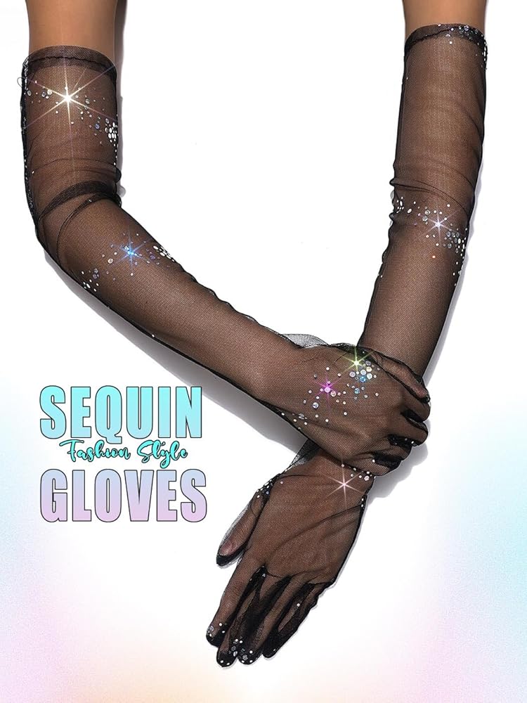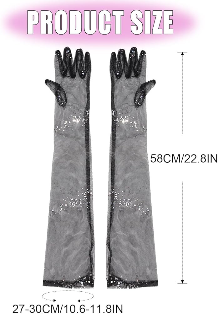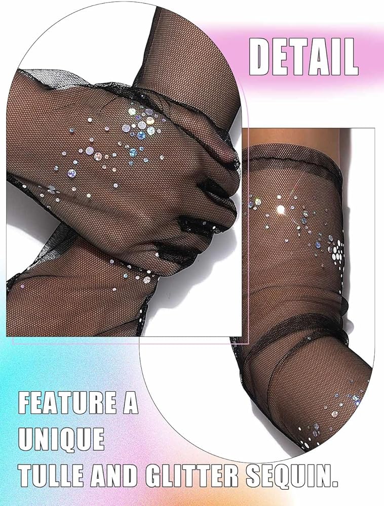 تتميز قفازات الأصابع السوداء بالتول والترتر اللامع الفريد، مما يجعل ملابسك أكثر سحرًا وعصرية.