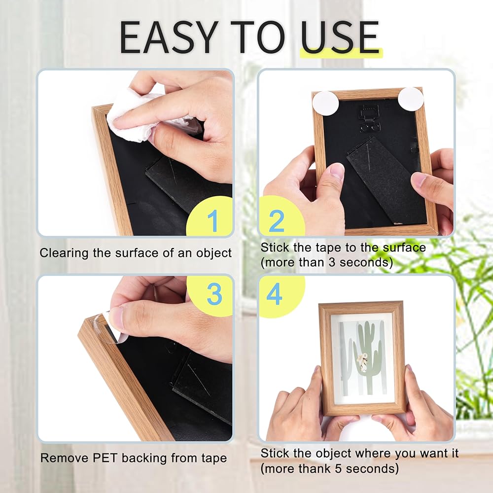 The removable double sided tape ensures a clean and residue-free removal, preserving the integrity of surfaces such as plastic, glass, metal, fabric, wood, and ceramic tiles. It adheres firmly without leaving behind any sticky residue, making it perfect for temporary installations or frequent repositioning.