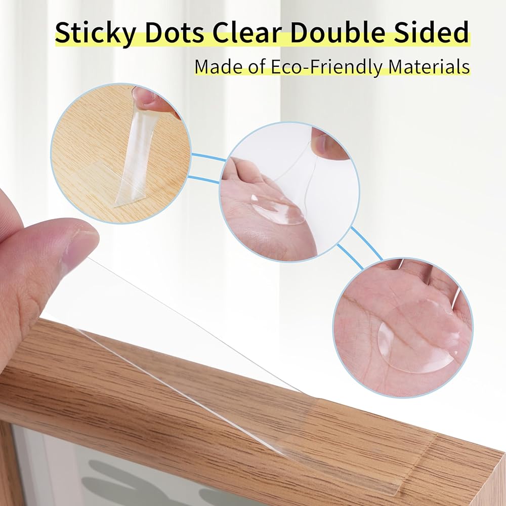 The sticky dots' clear, double sided, removable design ensures seamless integration into any decor or display. Their transparent nature makes them virtually invisible, allowing items to take center stage without distraction. Whether it's showcasing artwork, photos, or party decorations, these clear adhesive dots provide a discreet yet effective solution.