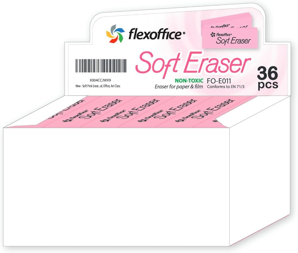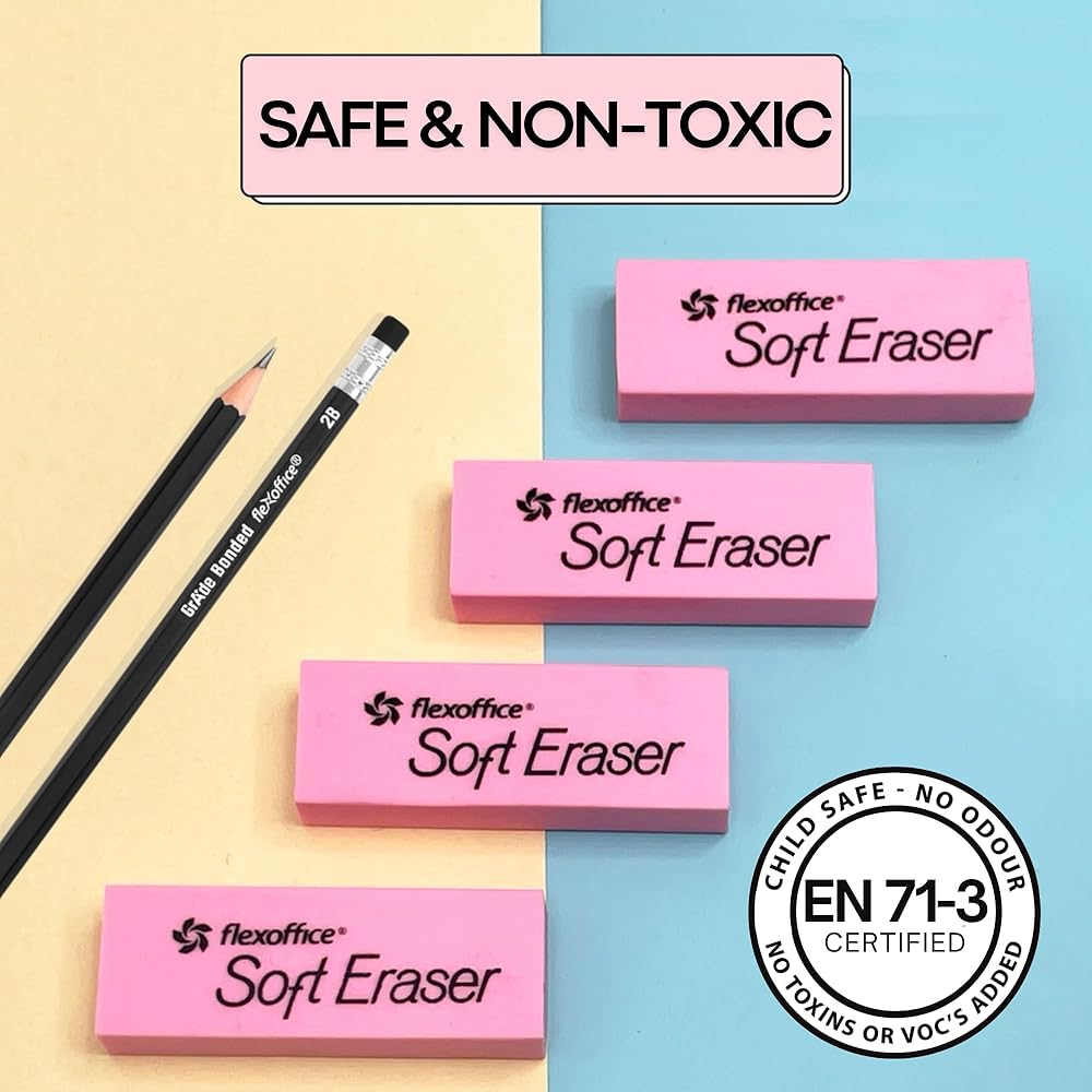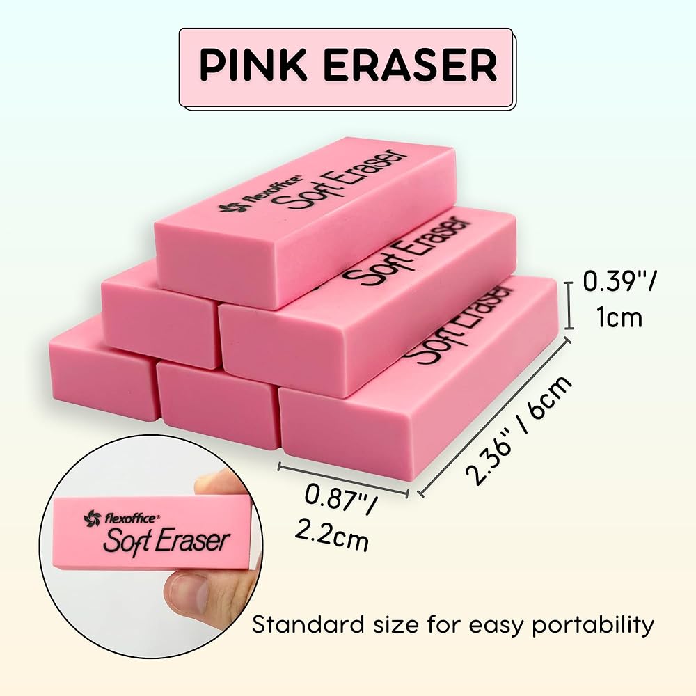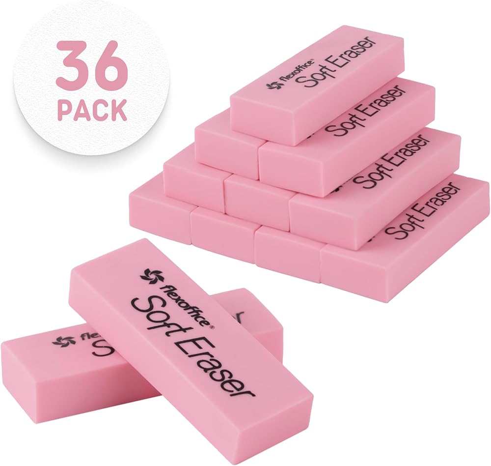 - ممحاة كتلة ناعمة: توفر تصميمًا سهل الإمساك من أجل قبضة آمنة وممتعة ومحو تفصيلي. يتم توفير المزيد من التحكم في ما تقوم بمسحه من خلال الحواف المشطوفة