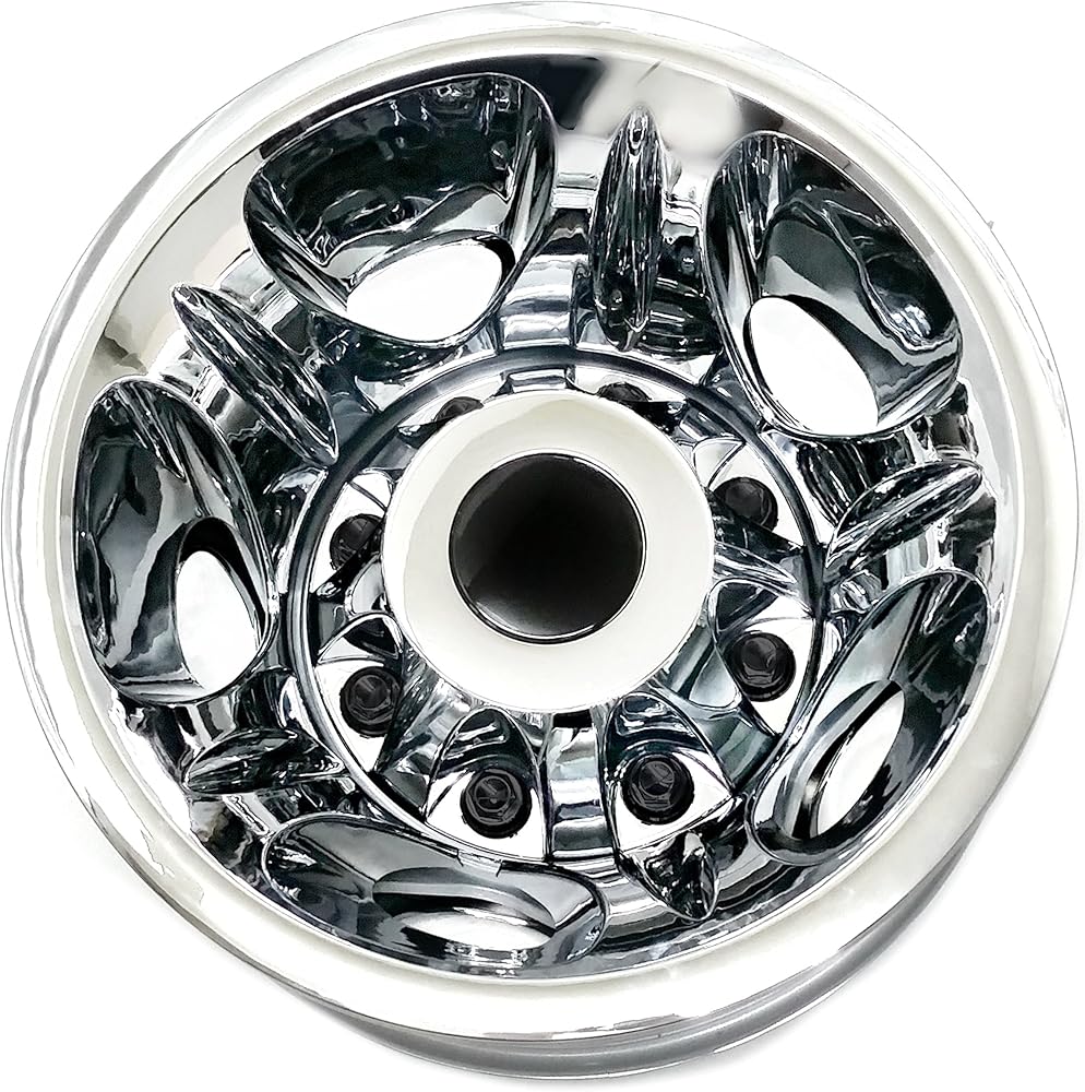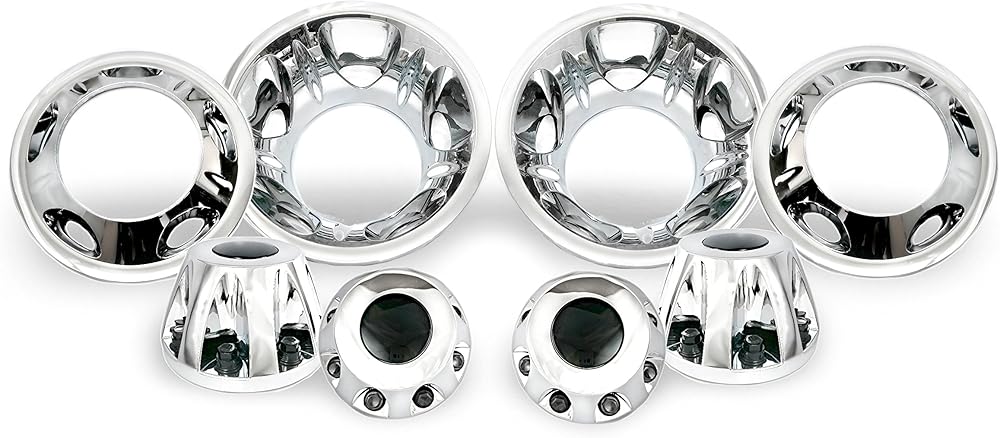 Kaper II SS-1704ABS-C11 is a Chrome Plated Molded ABS / Polycarbonate Wheel Simulator set for Chevrolet / GMC 3500 Trucks Using Eight Lug 17 Inch Wheels. This Set Features Long-Lasting Non-Rusting, Easy Care , Light Weight, High Intensity Shine Chrome ABS/Polycarbonate Plastic. The Chrome Plating is Detroit OEM Caliber Providing an Unsurpassed Brilliant Durable Shine. The Molded Manufacturing Process Allows us a More Exacting Fit Compared to Traditional Pressed 304 Stainless Steel Sets. The Shine is unmatched in Brilliance and Easily Maintained with Simple Soap and Water. Show Class Shine can be Achieved with Standard Chrome Polish. This set Mounts by Pushing the Wheel Rims onto the Wheel and Lightly tapping them into Place with a Rubber Mallet. The Front and Rear Axle Covers Line Up and Screw onto the Threaded OEM Lug Nuts with Embedded Lug Nut Covers attached to the Axle Covers.