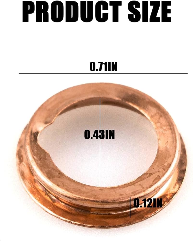Precise Dimensions: This set of 12/24 drain plug gaskets features dimensions of 0.67" (17 mm) outside diameter, 0.43" (11 mm) inside diameter, and 0.12" (3 mm) thickness for a reliable and snug fit.