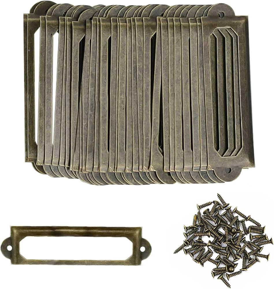 Bronze color antique label holder, file drawer label holder, metal name card cabinet shelves