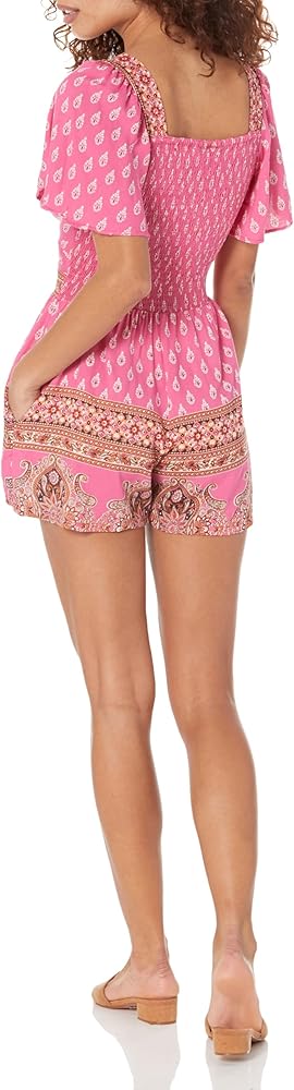 Angie Women's V-Neck Ruffle Sleeve Romper with Center Cutout features a stunning bohemian pattern. The peekaboo cutout in the middle that shows just a hint of skin. This romper is great for going out.