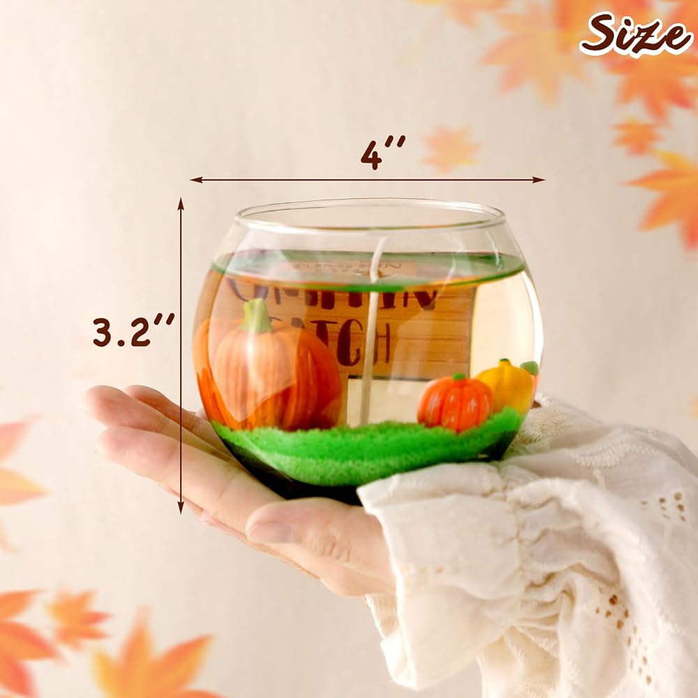 ديكور مشهد رقعة اليقطين: شمعة رقعة اليقطين الخاصة بنا مصنوعة من الشمع الشفاف، مع القرع الكبير والصغير، وعلامة رقعة اليقطين بالداخل، والتي تكون مرئية بوضوح ويمكن أن تخلق جوًا فريدًا وجميلاً لمهرجان الحصاد لمنزلك.