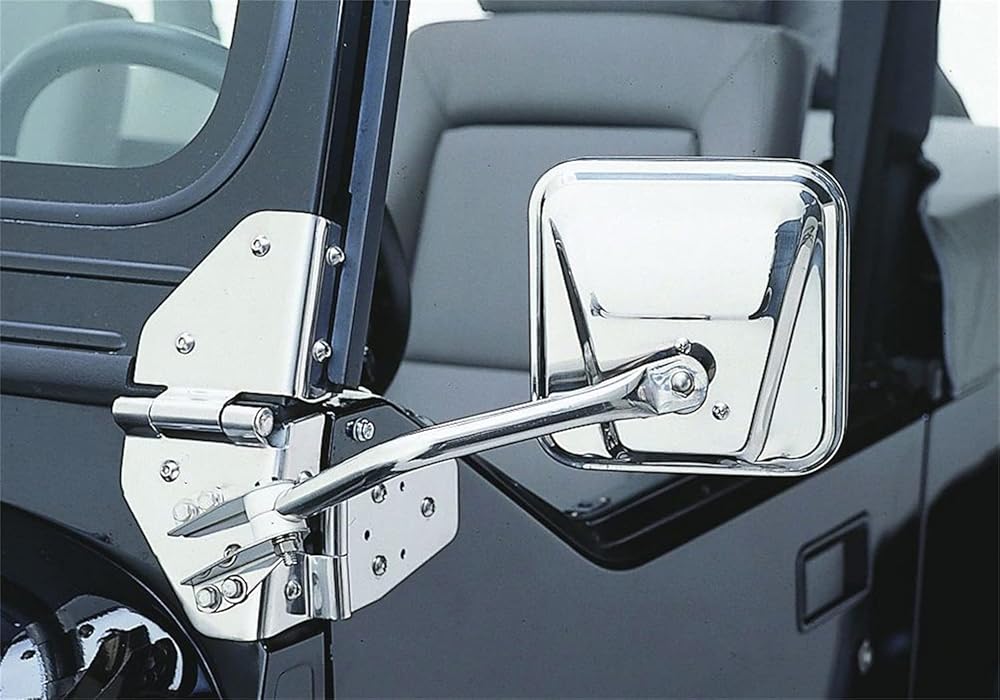 Rampage Stainless Steel Half Door Side Mirror Kit for 1955-1986 Jeep CJ is a great replacement for your Wrangler's factory side mirrors. They are direct bolt-on replacement. Kit contains driver and passenger side mirrors. Drilling is required for 1987 vehicles or vehicles that do not have passenger side mirrors.