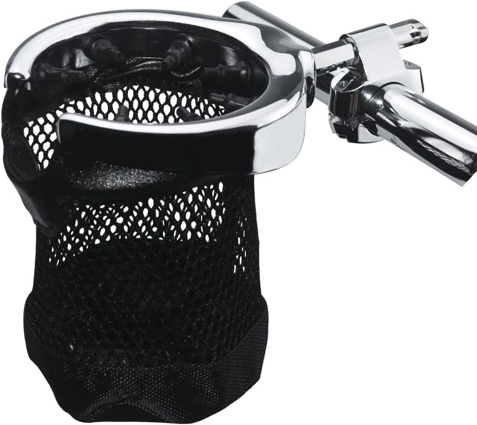 حامل أكواب على شكل مقود من الكروم من WOWTK، حامل مشروبات عالمي مقاس 1 بوصة مع سلة لـ Harley Sportster Softail Dyna Touring Street Glide Road King Road Glide Electra Glide Vulcan Yamaha سوزوكي هوندا