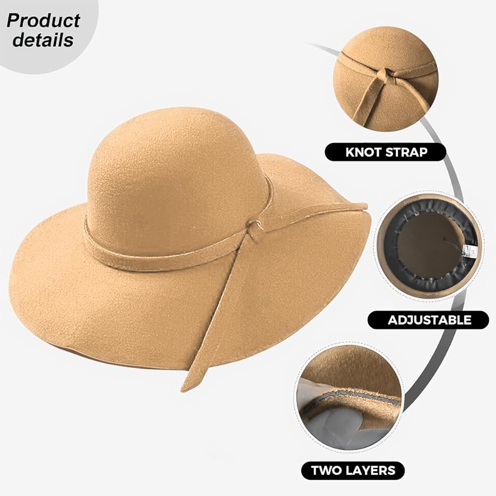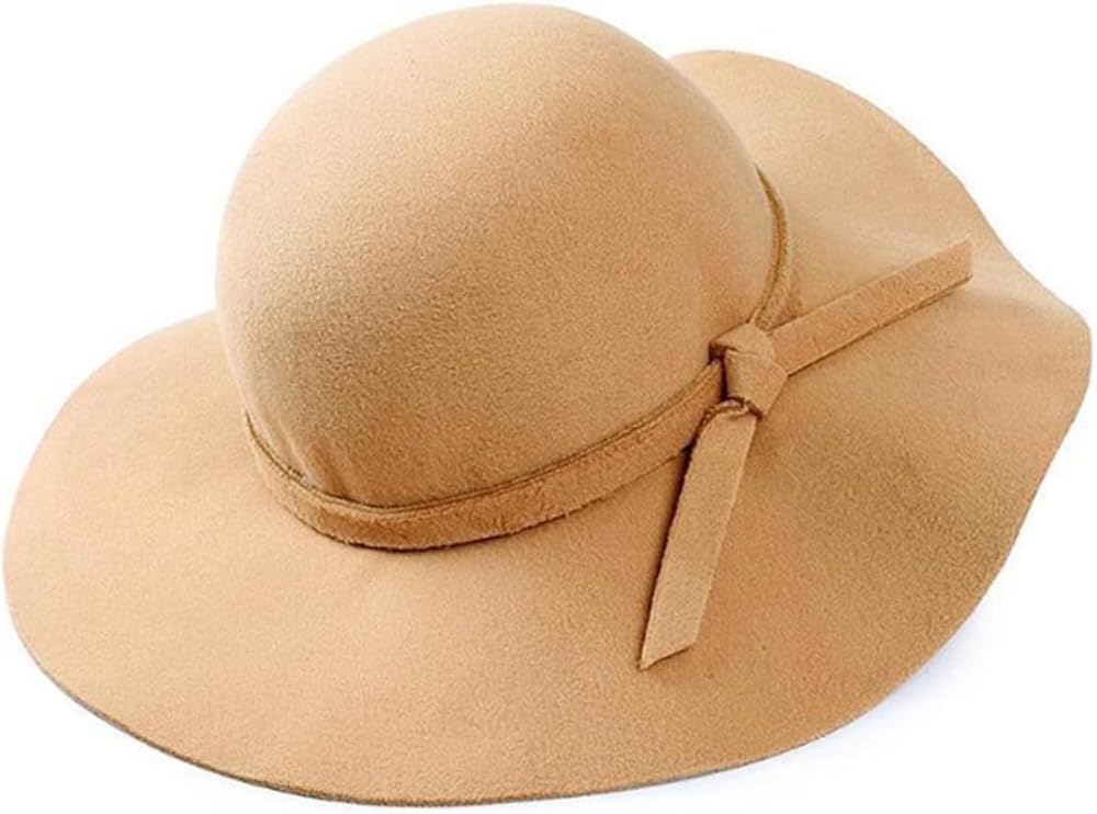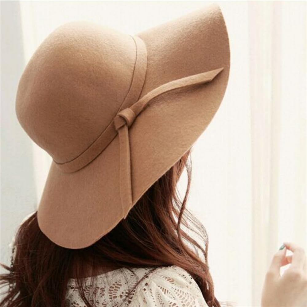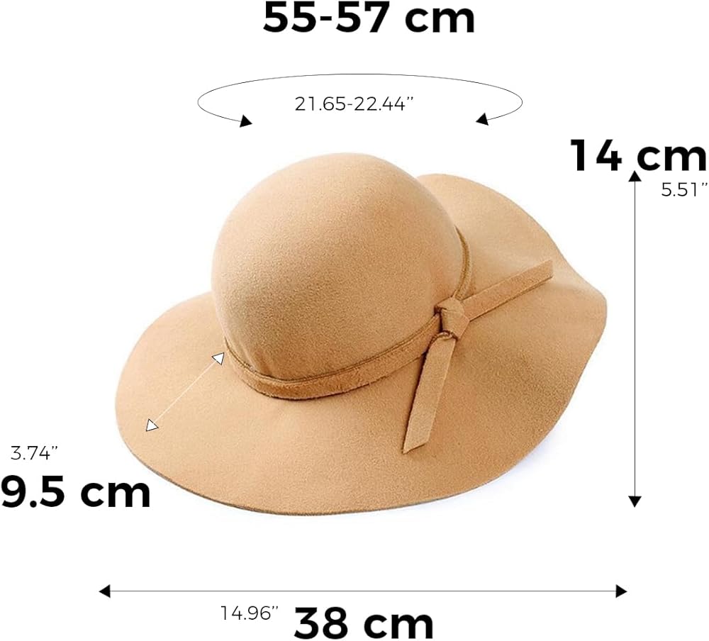 قبعة مرنة كلاسيكية قابلة للطي بحافة واسعة للنساء، قبعة فيدورا من الصوف الدافئ قبعة مرنة للشاطئ قابلة للطي للكبار 57 سم الجمل