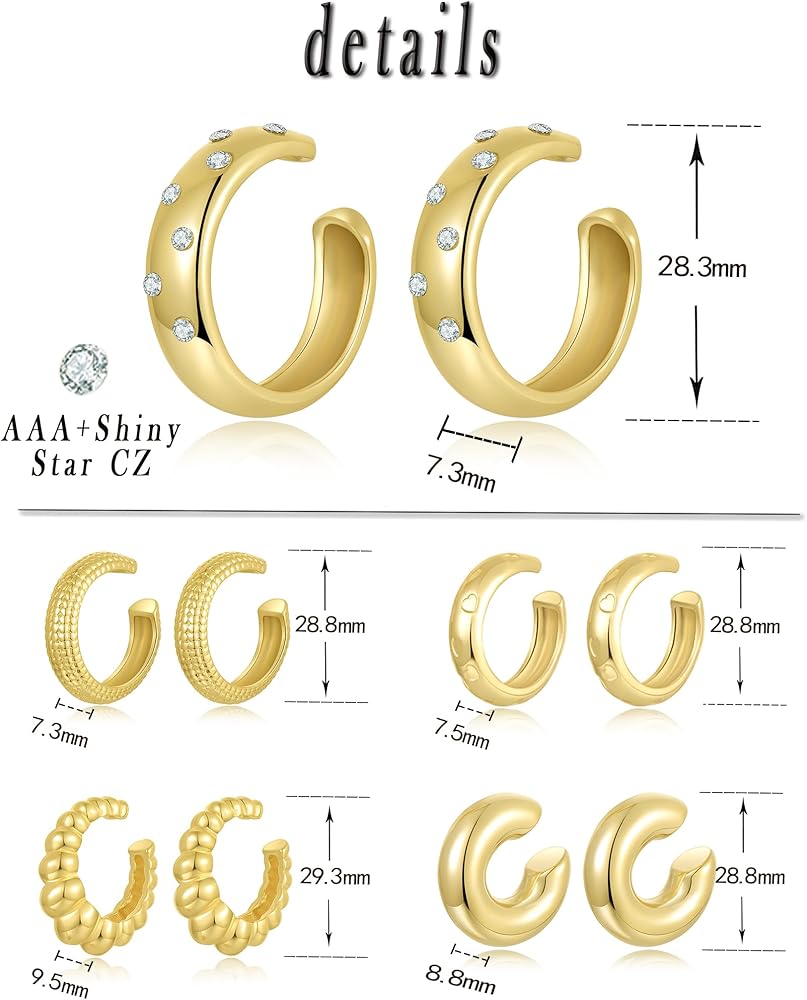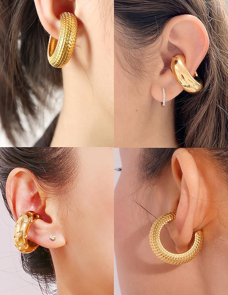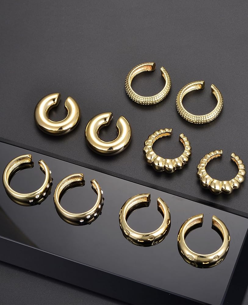 مجموعة أساور الأذن - سوف تحصل على 5 أزواج من أقراط الأذن ذات الأنماط المختلفة، والتي تعتبر رائعة للأذنين غير المثقوبة، تصميم الطوق المكتنز على شكل حرف C لهذه الأقراط المزيفة يوفر قطعة مميزة جريئة وأنيقة، يجعلك ساحرًا بمزاجك