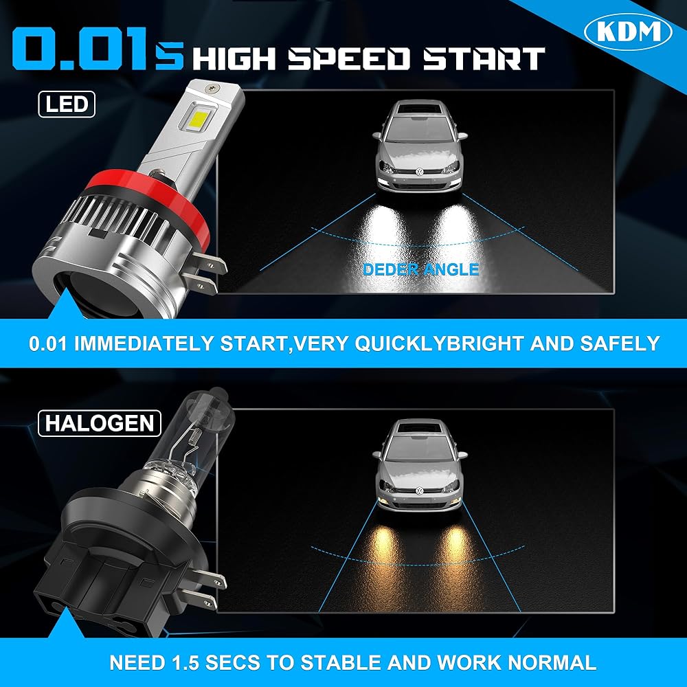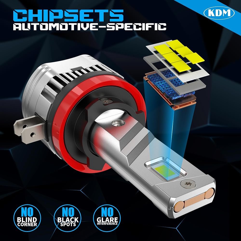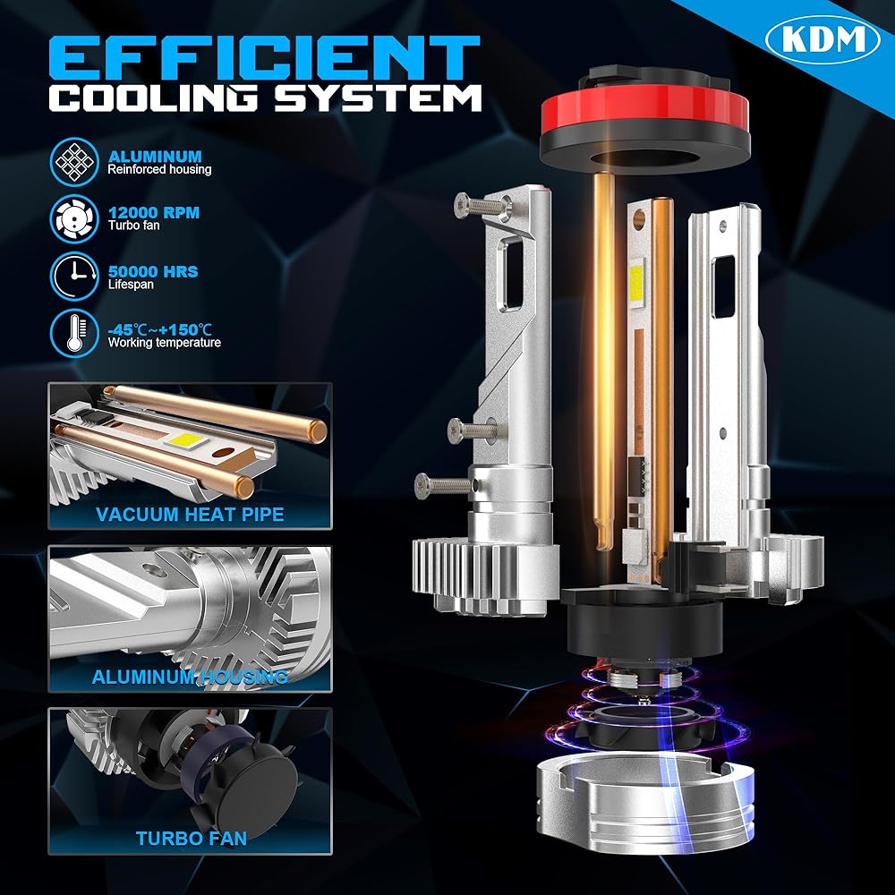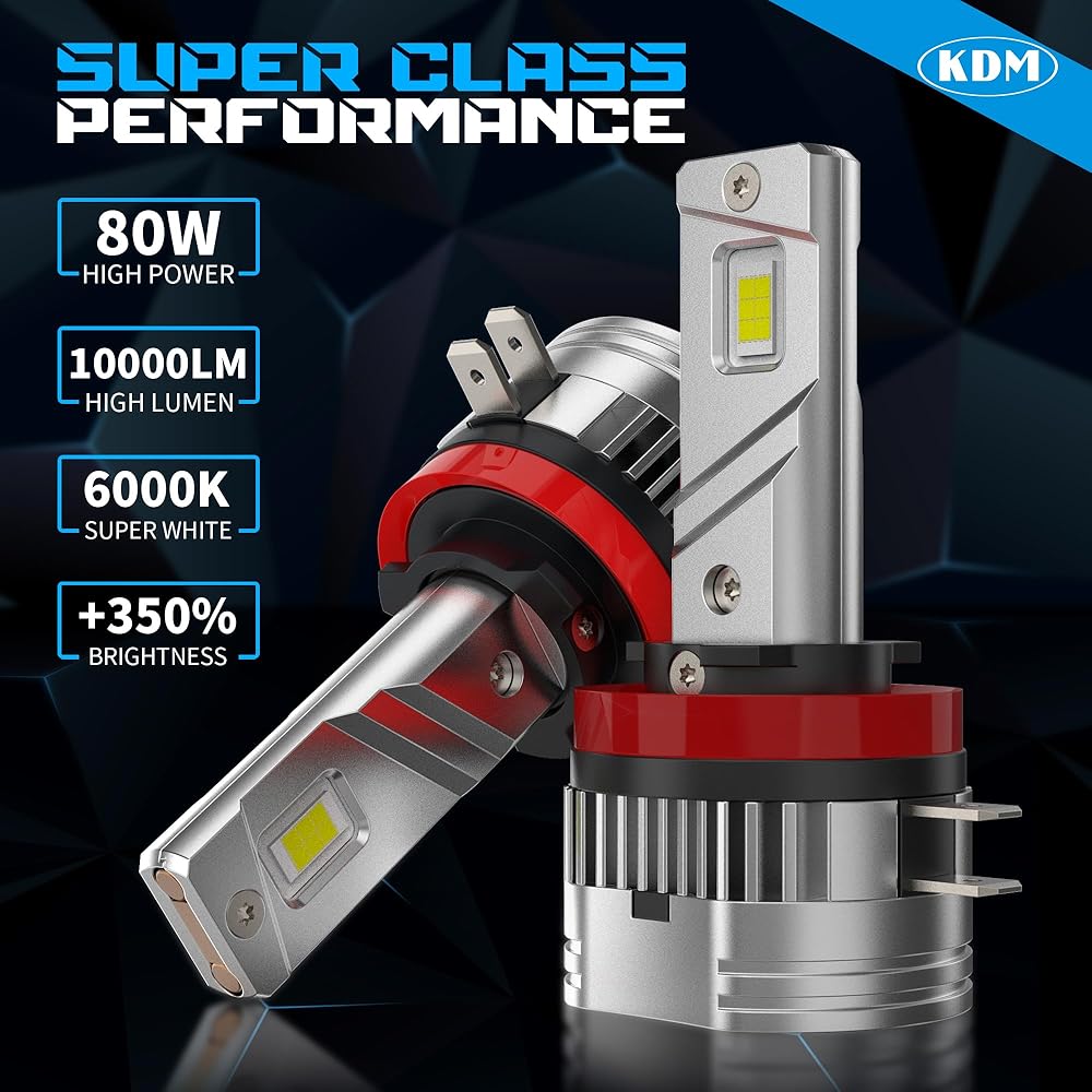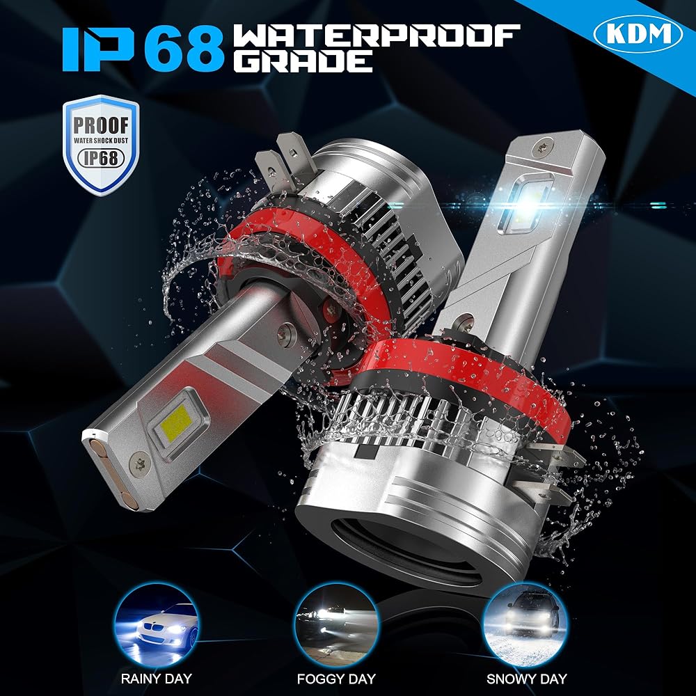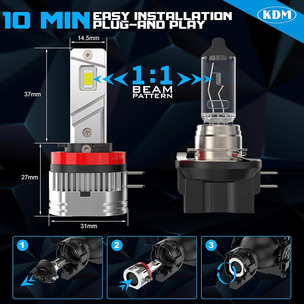 • 【سطوع عالي للغاية بنسبة 600%】تعتمد لمبة KDM H11B LED على تقنية مطورة حديثًا لعام 2024، وتستخدم رقائق LED عالية الطاقة بقدرة 80 وات لكل زوج. كل مجموعة يمكن أن توفر خرج 10,000 لومن، 6000 كلفن أبيض طبيعي. تحقق حقًا أكثر سطوعًا بنسبة 600% من الهالوجين، مما يوفر لك رؤية أفضل وتحسين سلامتك عند القيادة ليلاً.