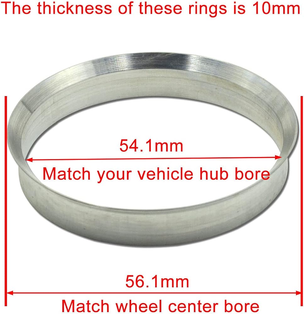 ONLY WORK for wheels with 56.1mm center bore and vehicles with 54.1mm hub bore. The thickness of these rings is 10mm