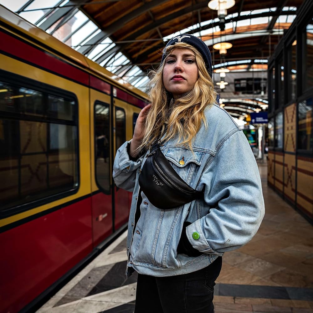 🕶️أسلوب برلين. مجموعة Mona fanny مستوحاة من روح موسيقى الروك أند رول في برلين. مثالية للنوادي أو المهرجانات، وكذلك للارتداء اليومي، يمكن ارتداء Mona بشكل كلاسيكي حول خصرك أو عبر صدرك بفضل حزامها القابل للتعديل والإزالة. الجيب الداخلي المزود بسحاب مثالي لمحفظتك أو مفاتيحك