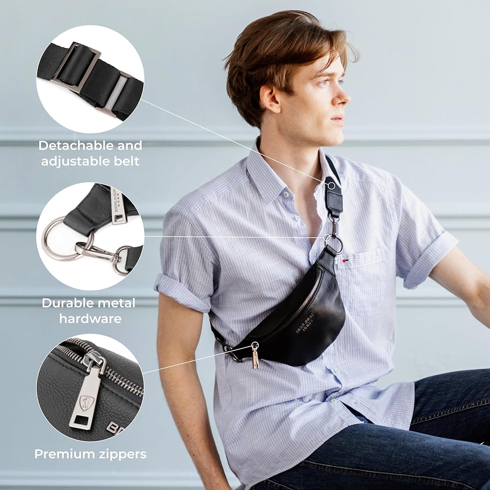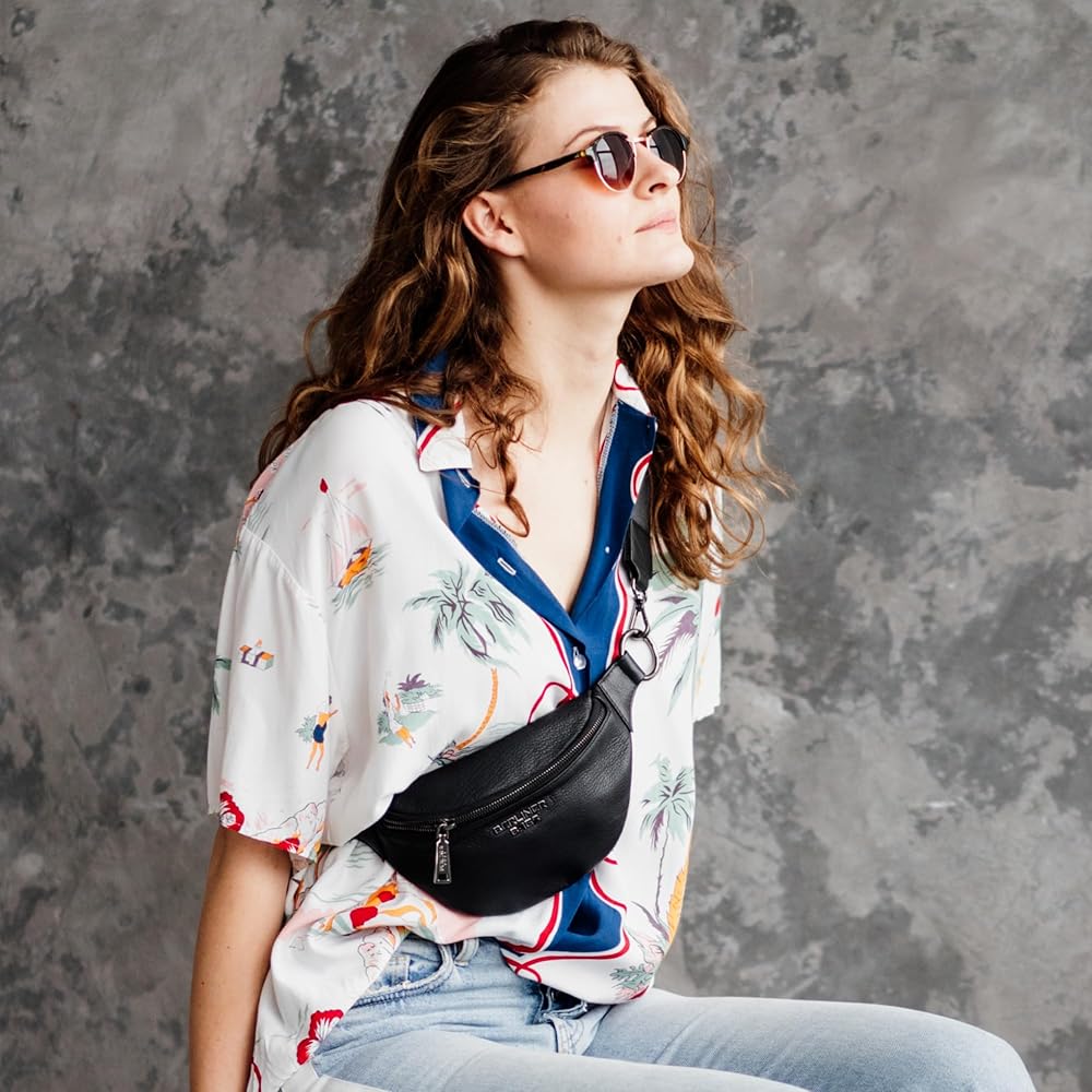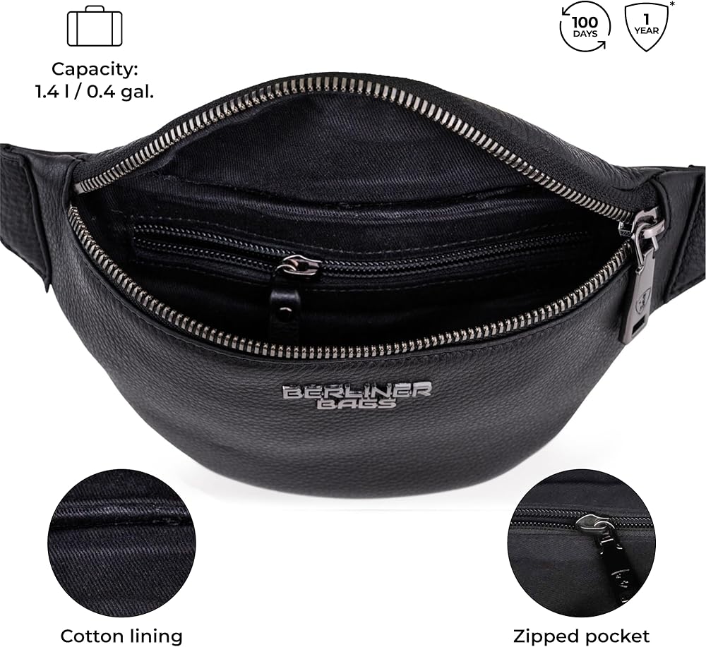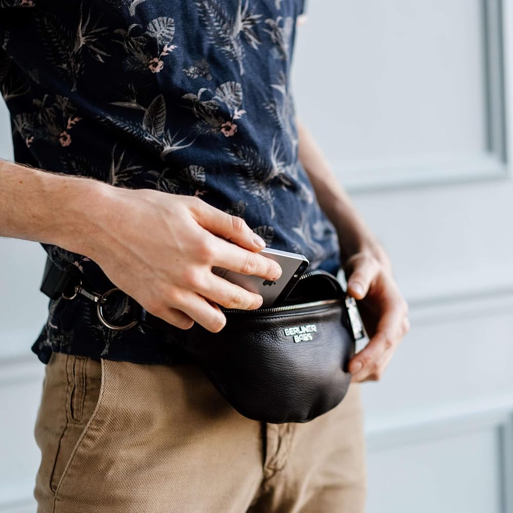 💎 صُنع ليدوم طويلاً. يبلغ مقاس حقيبة Mona fanny الأنيقة 11.8 بوصة × 5.9 بوصة × 0.4 بوصة (طول × عرض × ارتفاع) وهي مصنوعة من جلد محبب بالكامل ممتاز ومبطنة بالقطن بنسبة 100%. الجزء الأمامي من الحقيبة مزين بالشعار المعدني لحقائب Berliner. يتميز بسحابات معدنية مصقولة ممتازة مع سحّابات ذات علامة تجارية وحزام قابل للتعديل يتم ربطه بمشابك معدنية قوية