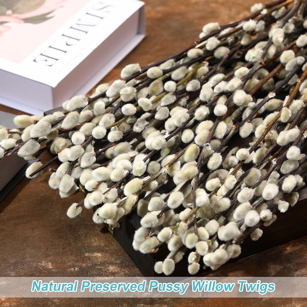 فروع الصفصاف المجففة المحفوظة الطبيعية للمزهريات، 20 ينبع الصفصاف الهرة الحقيقية، 17 "صفصاف الهرة الثلجية، الزهور المجففة للديكور الداخلي والخارجي، منزل الزفاف DIY الزهور الفن النباتات الموقد