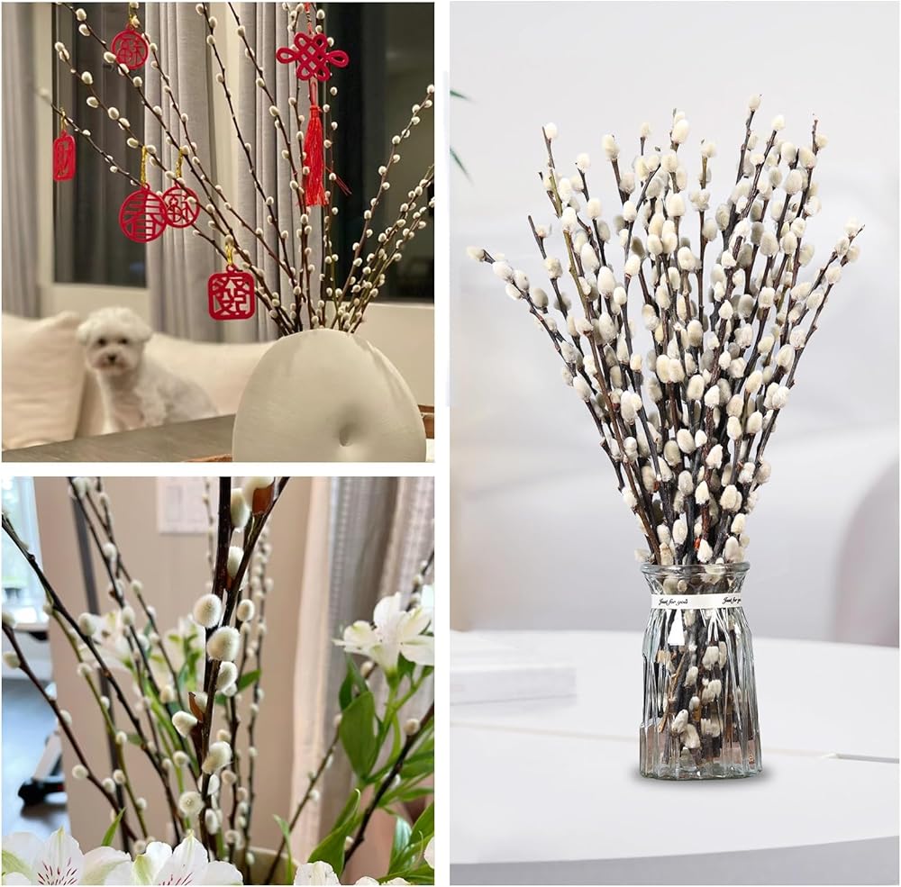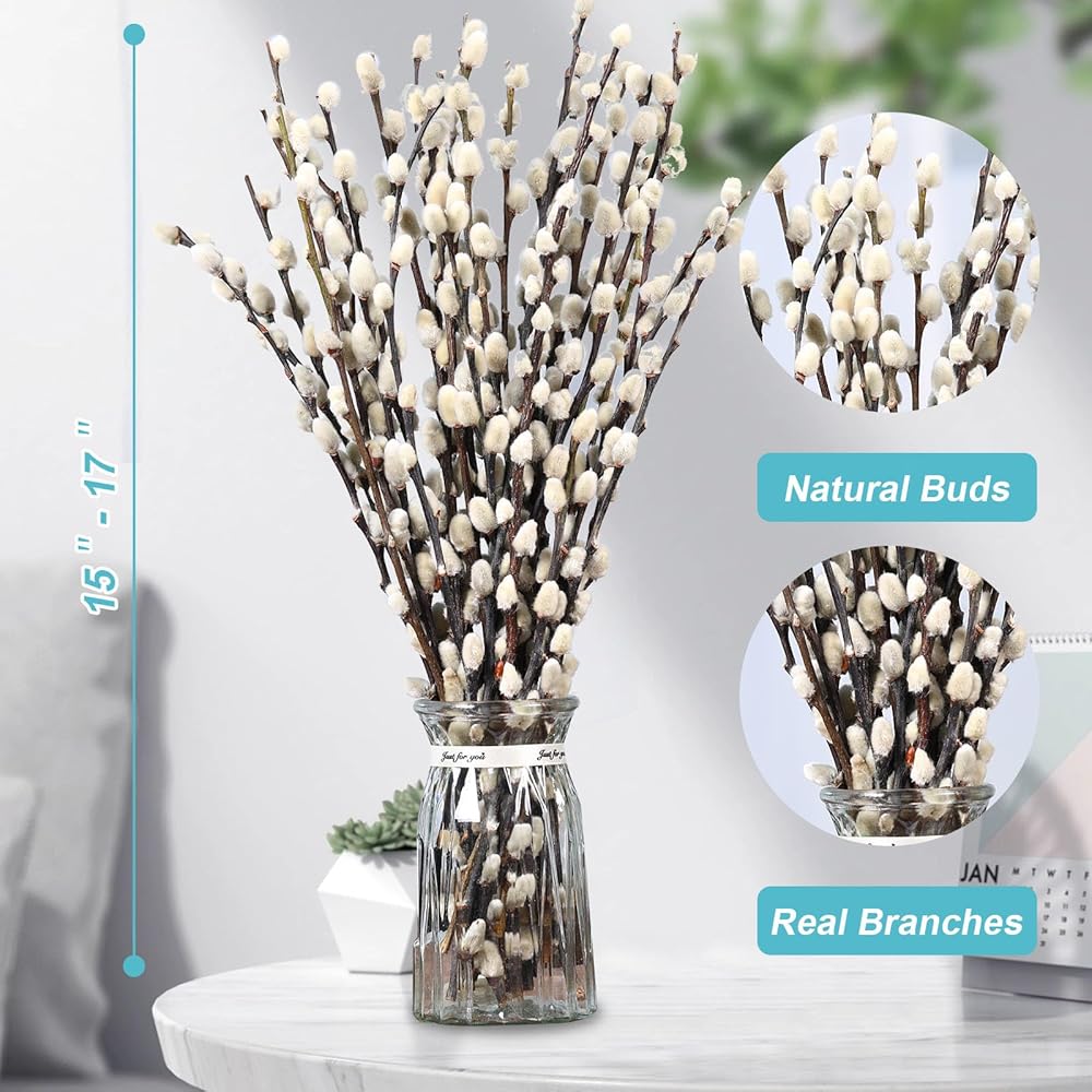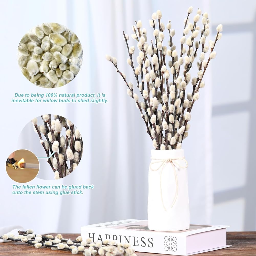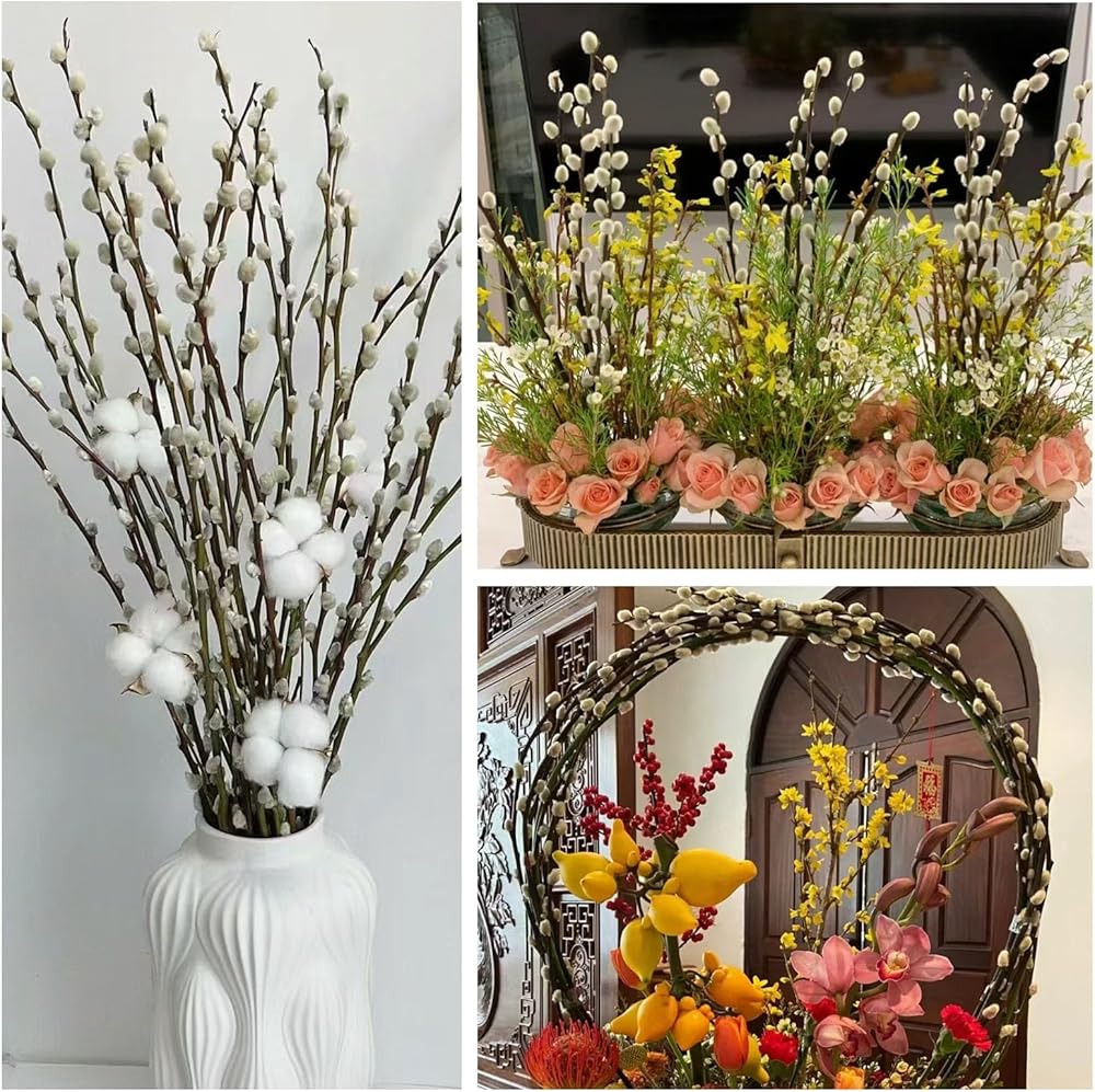• فروع الصفصاف الثلجي للمزهريات: فروع صفصاف الهرة مثالية للديكور على مدار العام. الأغصان والفروع مثالية للمزهريات، وفي الأماكن المغلقة، والخارجية، وباقات الزفاف، وغرفة الطعام، وقطع الطاولة المركزية، والحمام، والشرفة الأمامية، والمدفأة، والغطاء والرف. أضف المزيد من اللمسات الريفية إلى حياتك