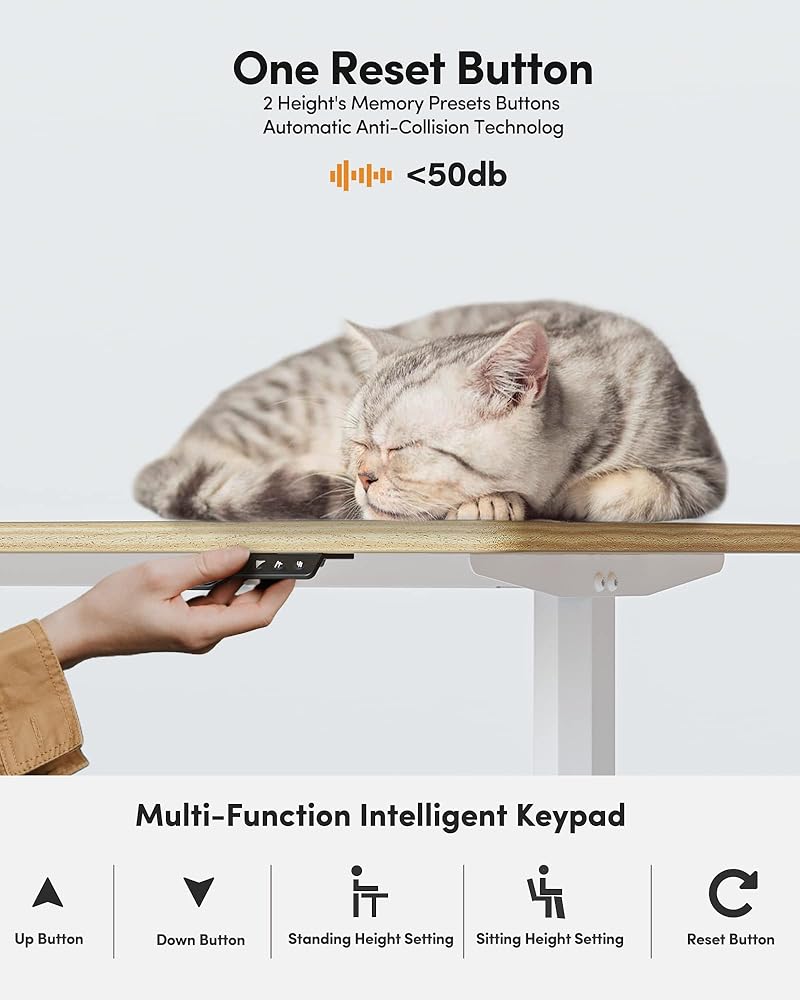 【Ergonomic Sit-Stand Desk】Standing desk is more in line with the healthy way of working, the adjustable desks use high quality motors, the operation noise is less than 55 decibels, even in the quietest room you can rest assured that it can be used