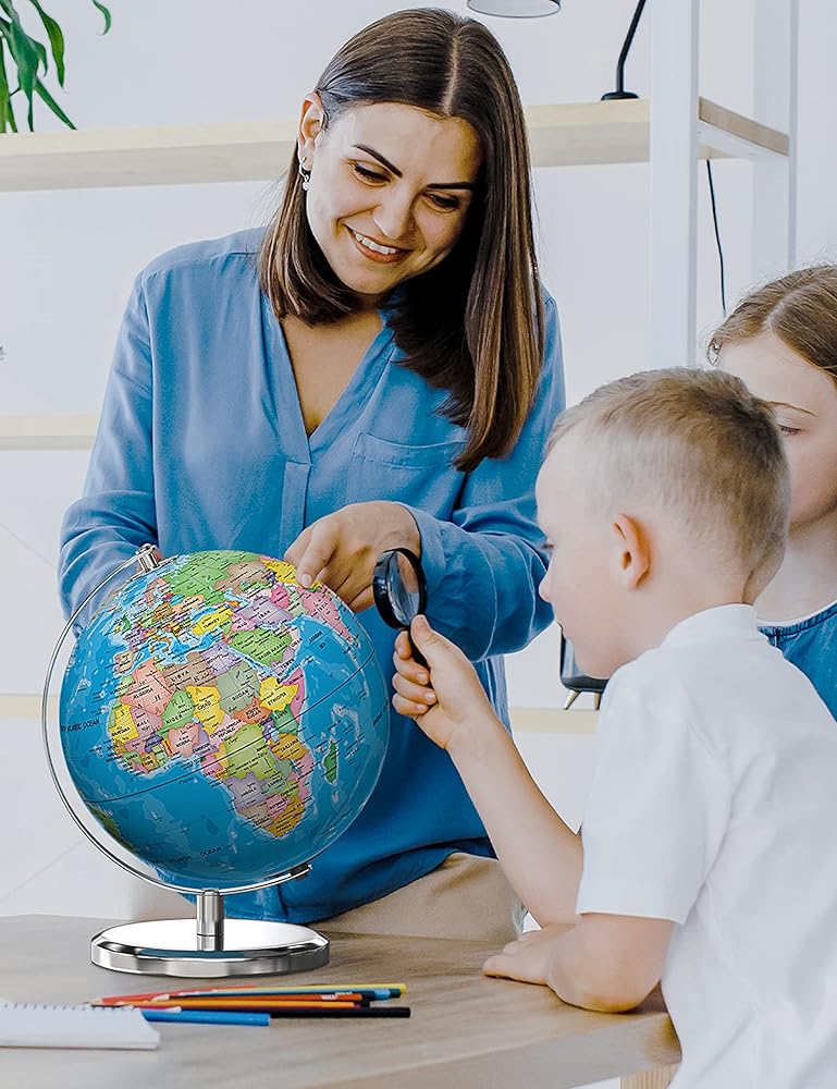 أكثر استقرارًا مع قاعدة ثقيلة - الحامل الأساسي للكرة الأرضية مصنوع من معدن عالي الجودة، وأقل تمايلًا عندما يقوم أطفالك بتدوير الكرة الأرضية.