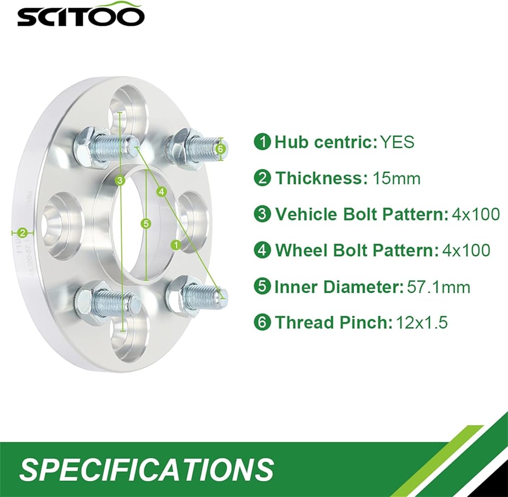محولات فواصل العجلات الفضية SCITOO 4X 15 مم 4x100 إلى 4x100 4 العروة 57.1 مم محور مع 12x1.5 يناسب 2005-2010 للكوبالت 2007-2009 لـ G5