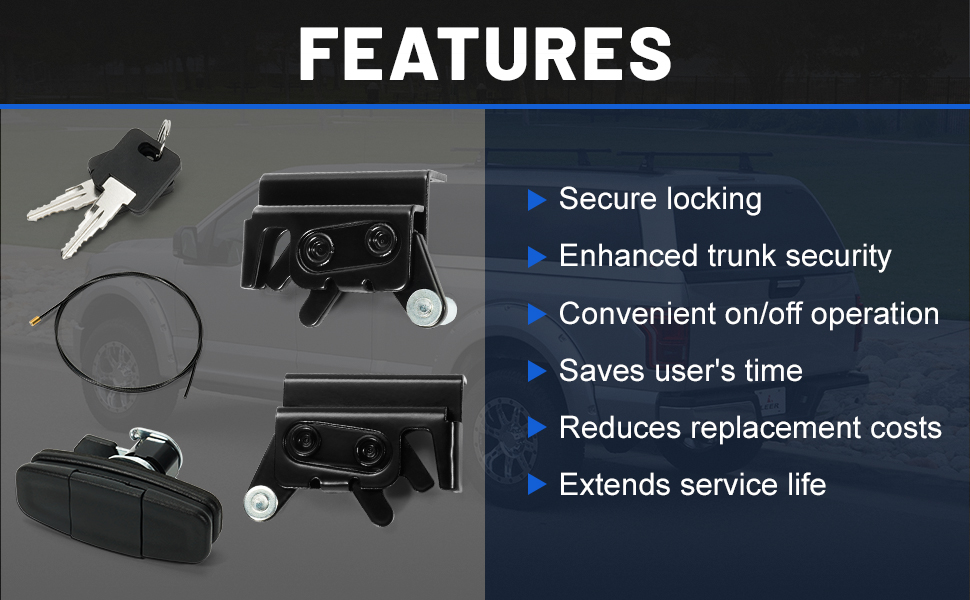 【الوظيفة】يتم استخدام مجموعة المقبض الملتوي لغطاء الشاحنة لتأمين وقفل صندوق شاحنة الالتقاط، مما يضمن بقاء غطاء صندوق السيارة في مكانه بشكل آمن في وضع الإغلاق، مما يمنع فتحه عن طريق الخطأ بسبب الصدمات أو العوامل الأخرى أثناء القيادة.