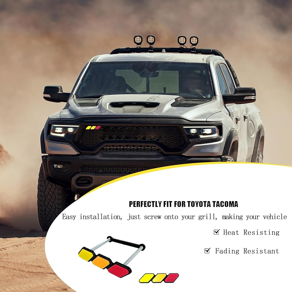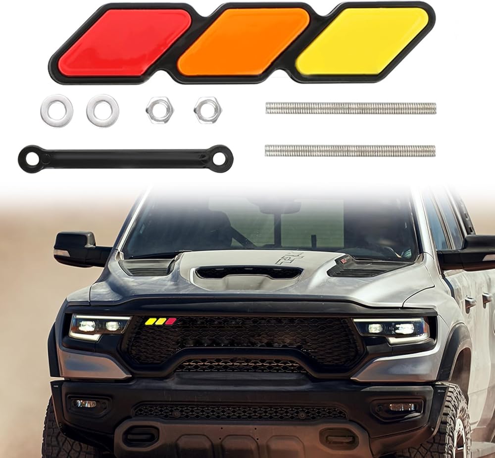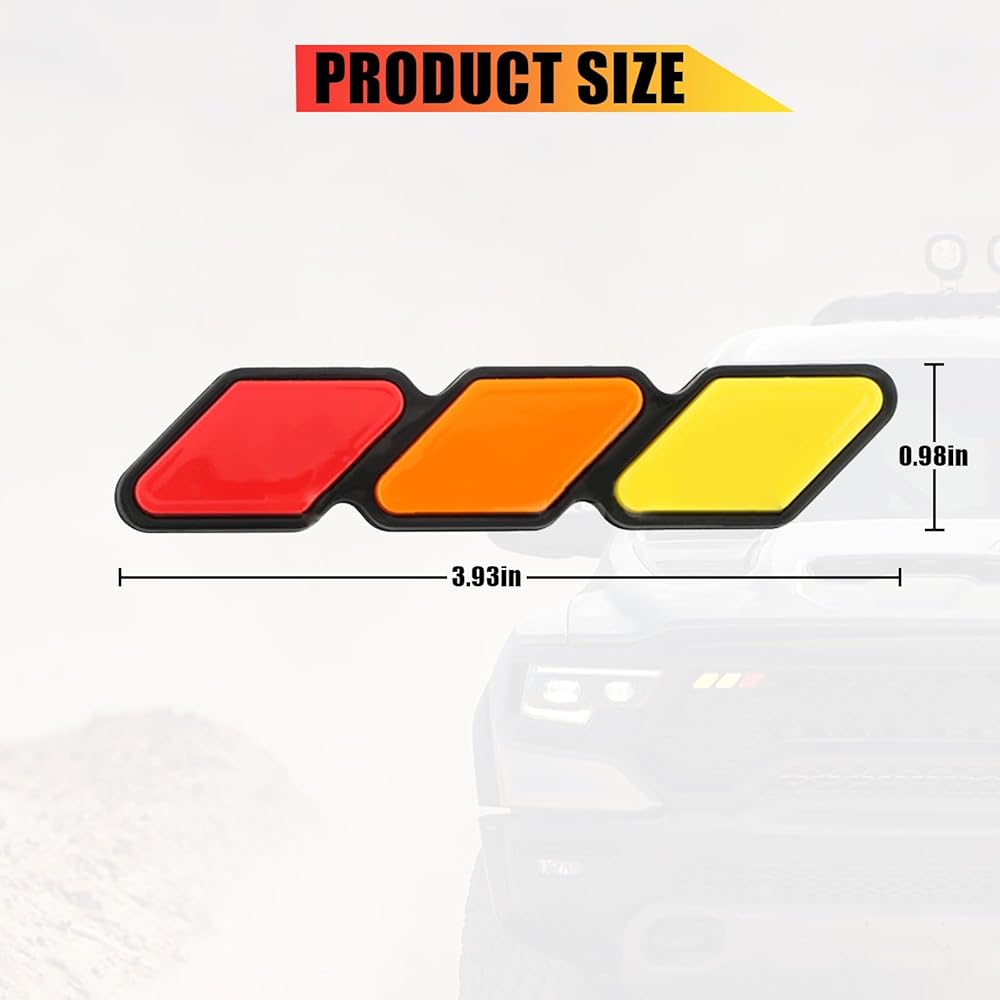 Tri-Color Design: Enhance the style of your truck with a Tri-Color badge emblem featuring yellow, orange, and red colors. Instantly make your vehicle stand out and be easily recognizable.