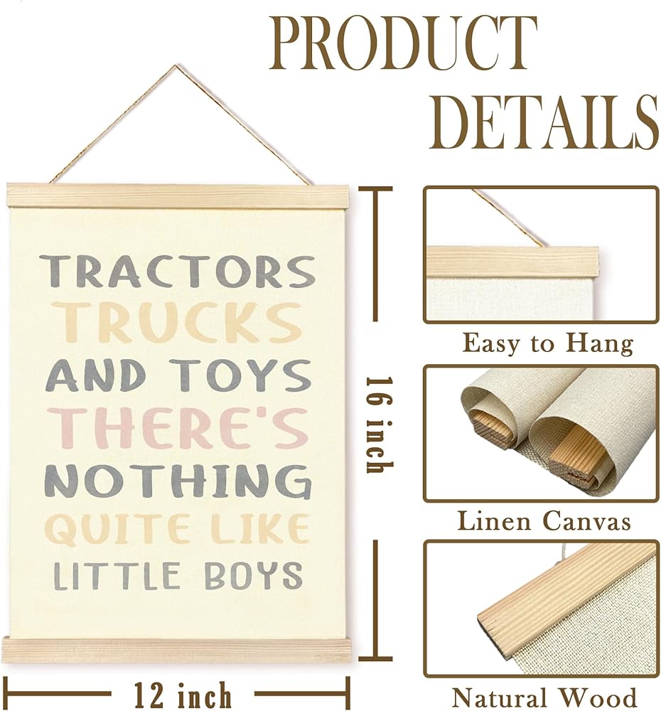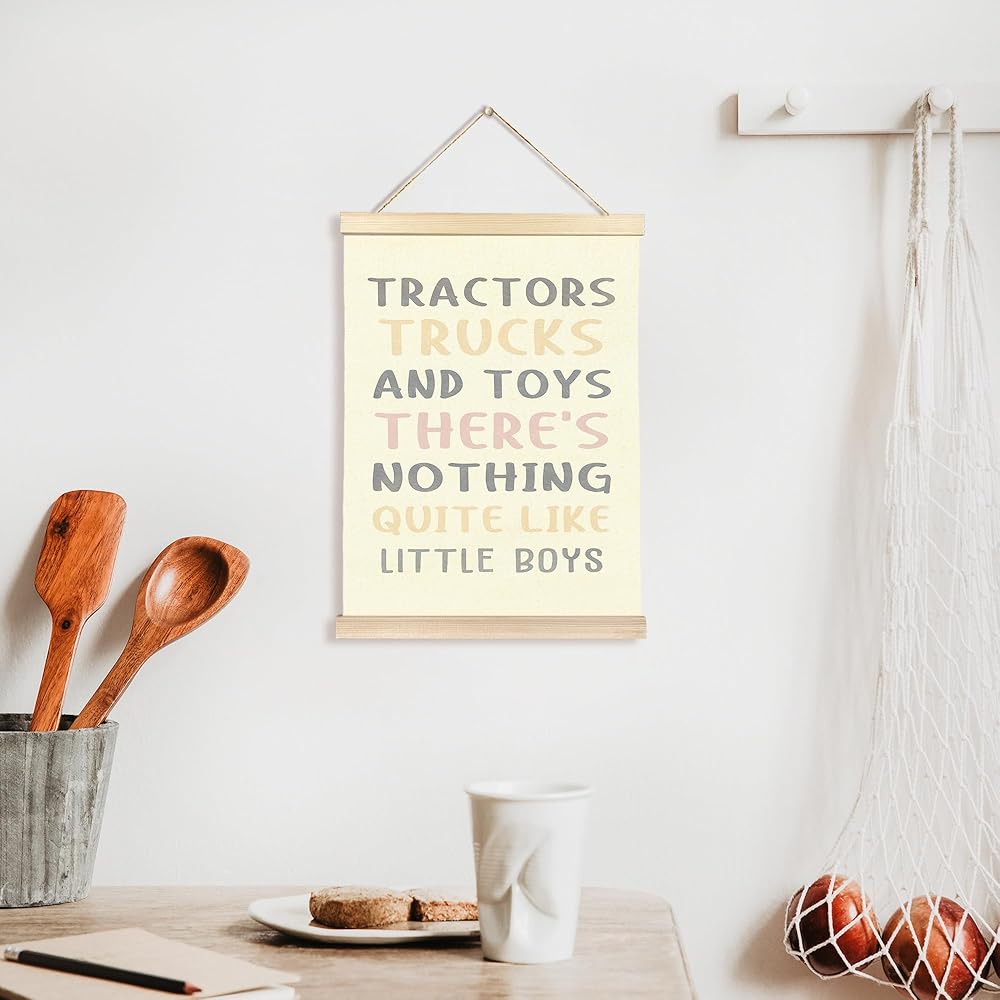 Printed on natural linen fabric with solid wood bars on top and bottom. The wooden frame provides durability, and the linen material enhances the overall aesthetic appeal.