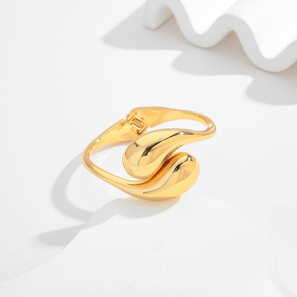 تصميم فريد: تم تصميم أسوارتنا الذهبية للسيدات بعناصر دمعة، وهي جديدة وفريدة من نوعها. إنها تواكب اتجاهات الموضة ولن تخرج أبدًا عن الموضة. إنه مناسب جدًا لارتدائك اليومي أو لحضور المناسبات المهمة.