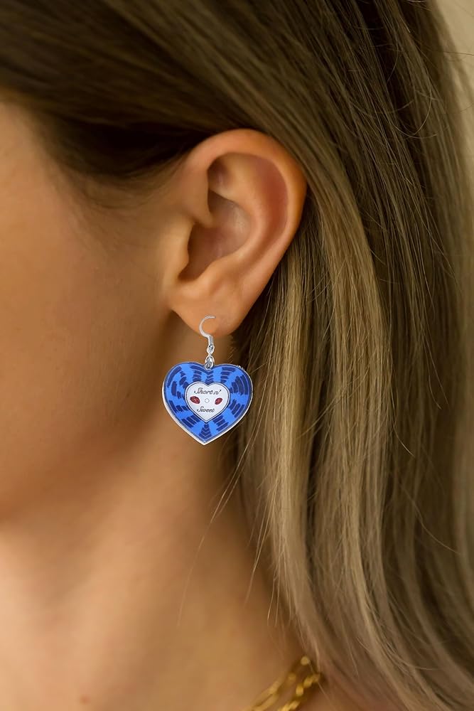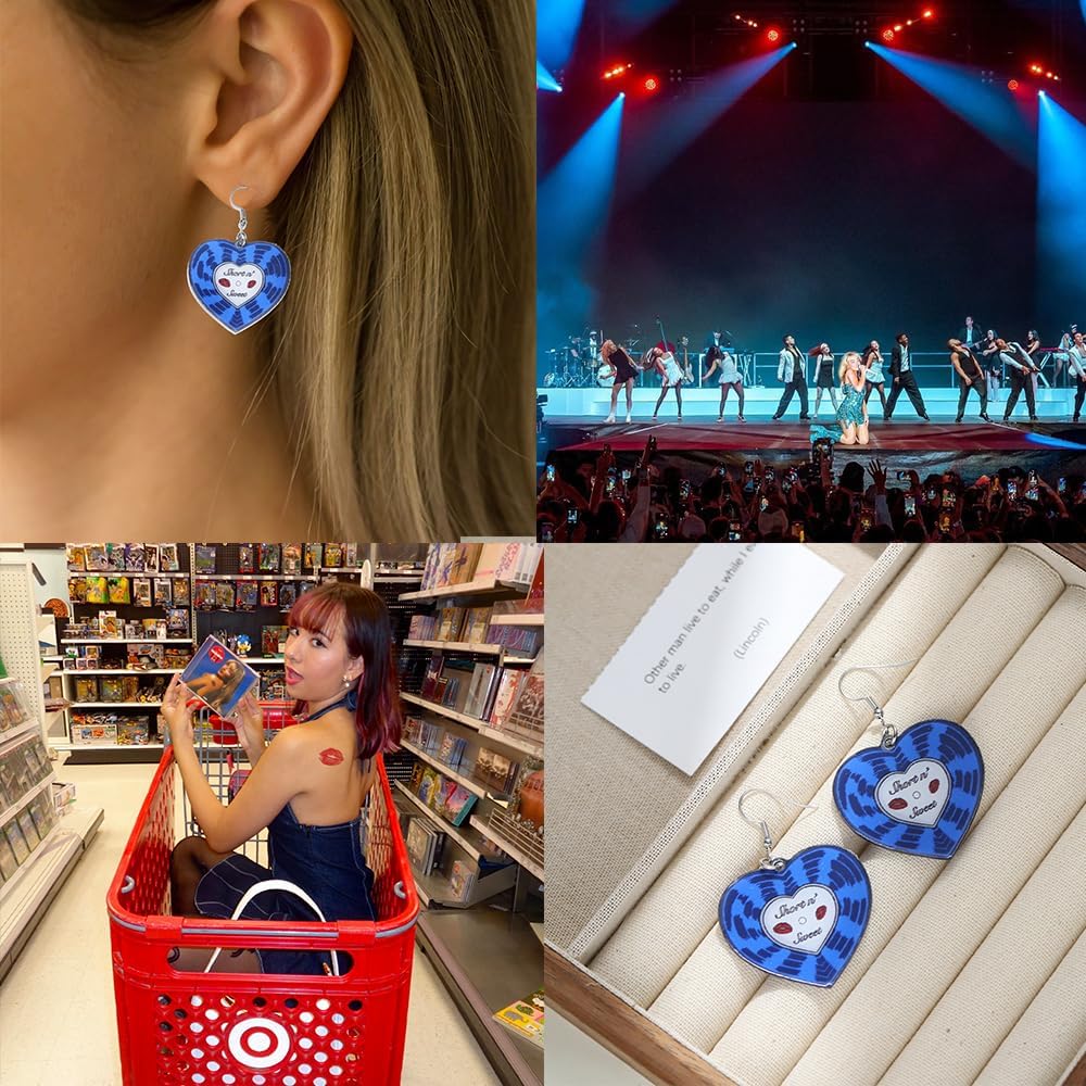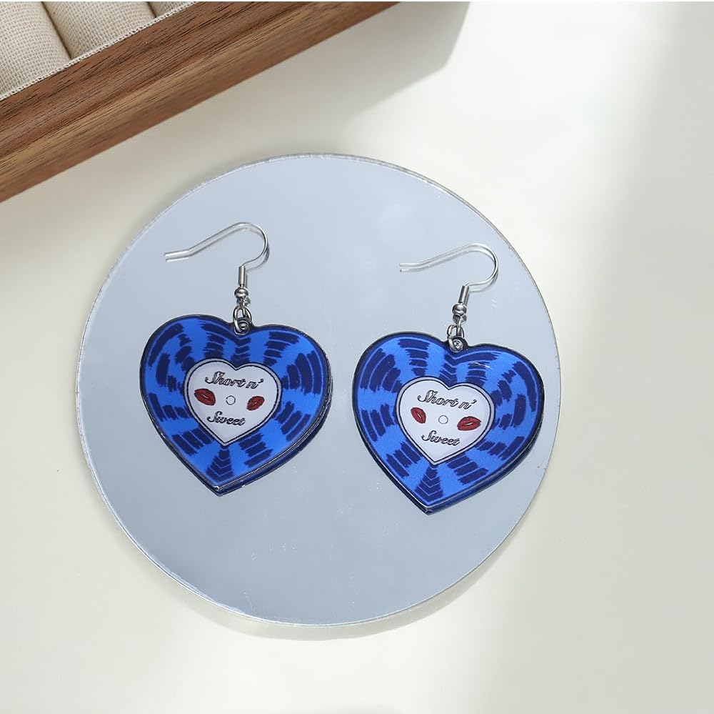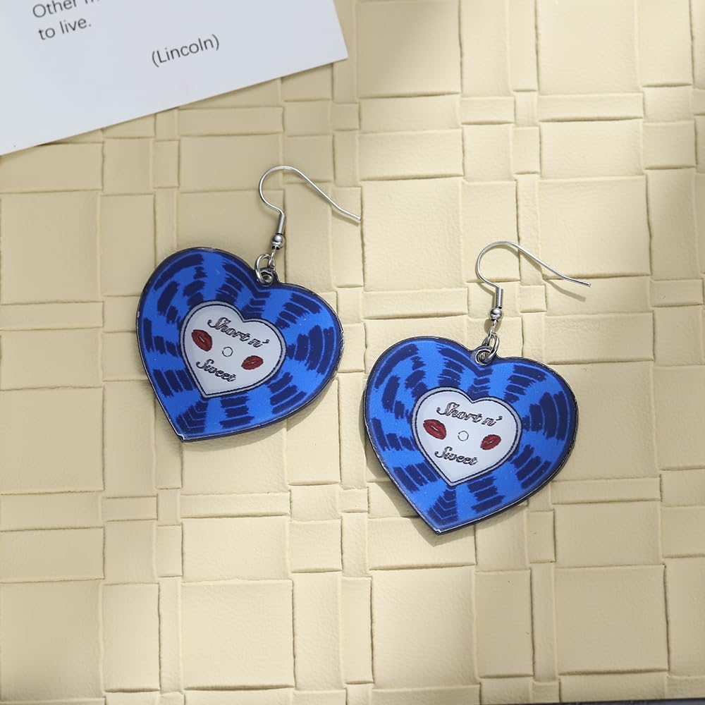 أقراط سابرينا كاربنتر 𝐒𝐡𝐨𝐫𝐭 𝐧' 𝐒𝐰𝐞𝐞𝐭 للحفلات الموسيقية للنساء المعجبين من الأكريليك الأرجواني على شكل قلب أقراط متدلية من ألبوم سابرينا أقراط مستوحاة من إكسسوارات الملابس لديكور الملابس