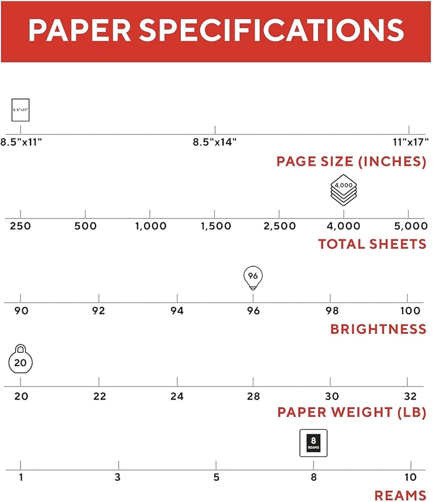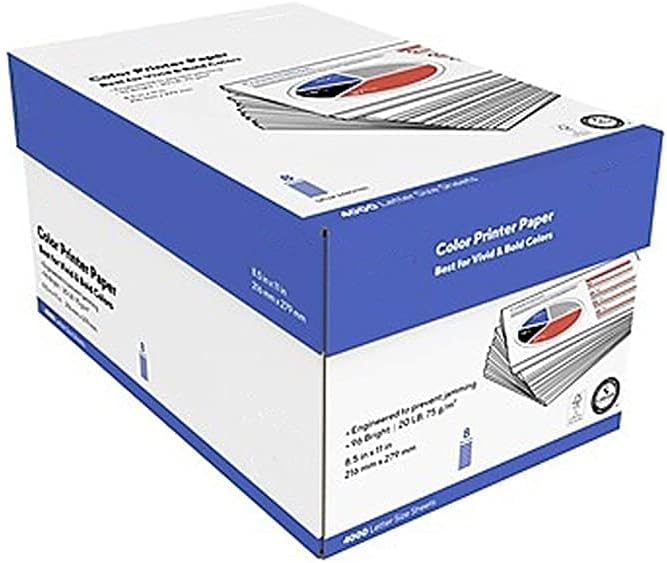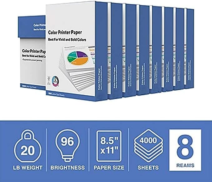 SUBSTANTIAL WEIGHT: Enjoy high-quality prints designed to stand the test of time with this carton of 4,000 sheets of bright color printer paper. Plus, its 20-pound weight is engineered to prevent jamming in your machines.