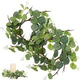 【أكاليل حلقات الشموع】تم تصميم حلقات الشموع من أوراق الأوكالبتوس الصناعية ذات النسيج الشفاف، ترمز إلى الطبيعة، رائعة وحيوية، واللون الأخضر يمنحك جوًا مريحًا ومنعشًا، ويبدو واقعيًا للغاية ولافتًا للنظر.