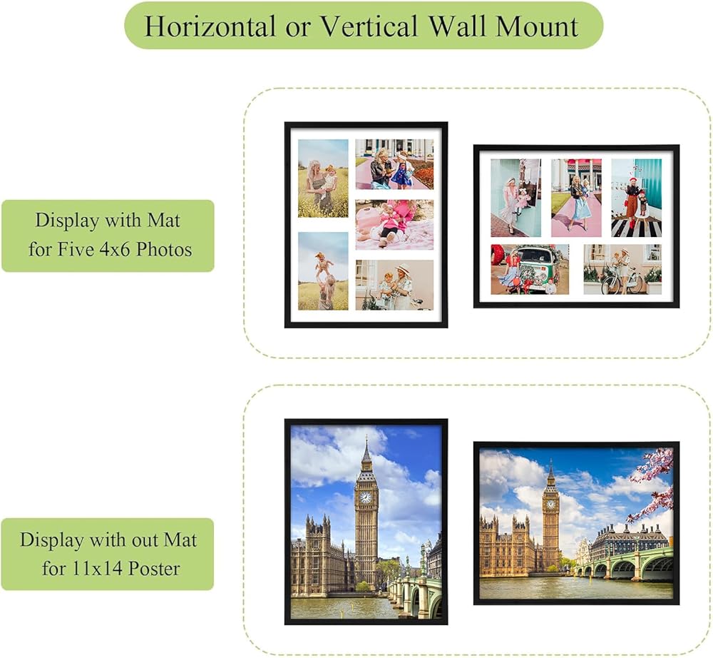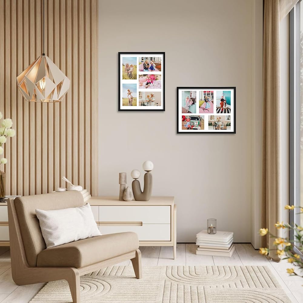 مقاسات متعددة: كمجموعة إطار صور متعددة الأحجام، يمكنها عرض صور 5x7، 4x6، 4x4 مع حصيرة و10x15 phptp بدون حصيرة، مما يحافظ على ذكرياتك التي لا تنسى مع عائلتك بشكل مثالي