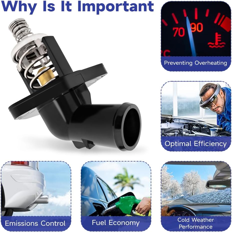 • 【Timely Replacement】Thermostat Housing Water Assembly can malfunction over time, leading to overheating or poor engine performance. Replacing a faulty thermostat is a relatively straightforward and cost-effective repair that can save you from more severe engine problems down the road