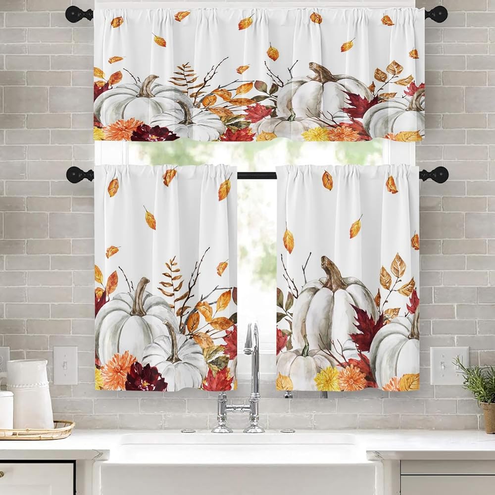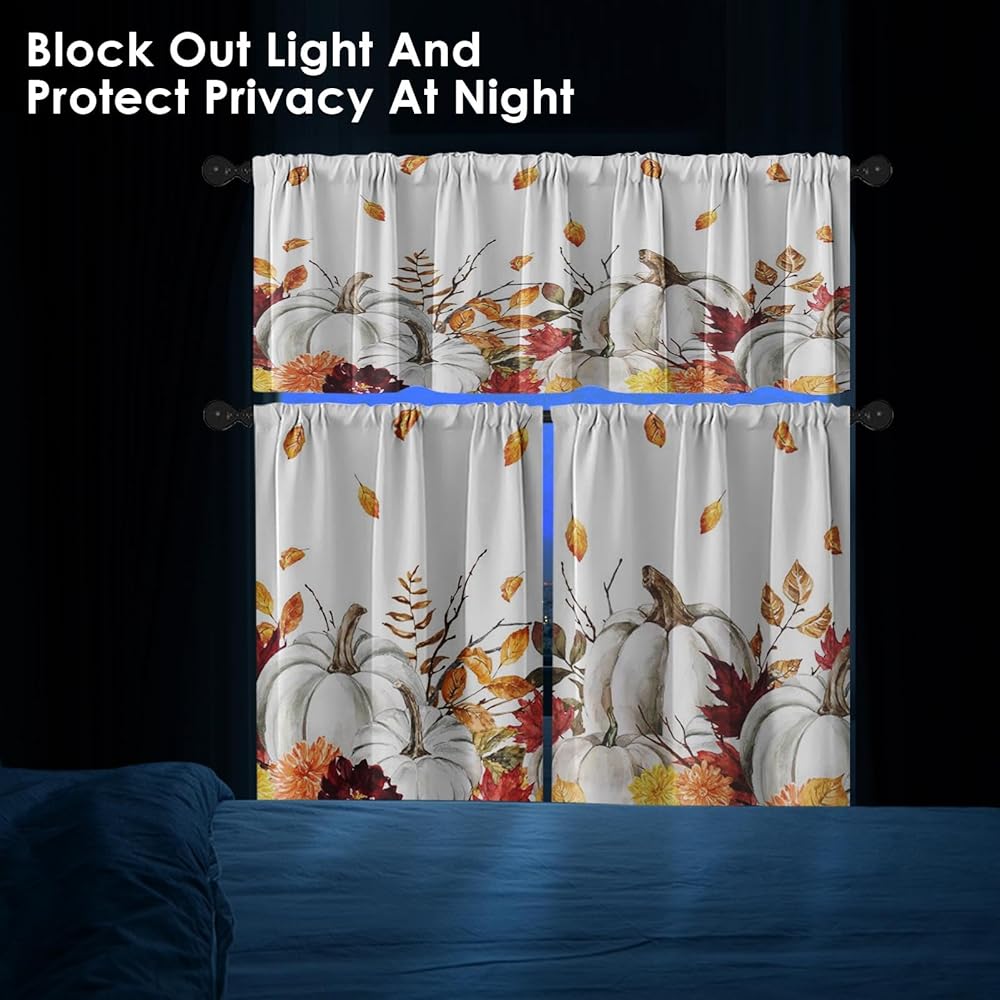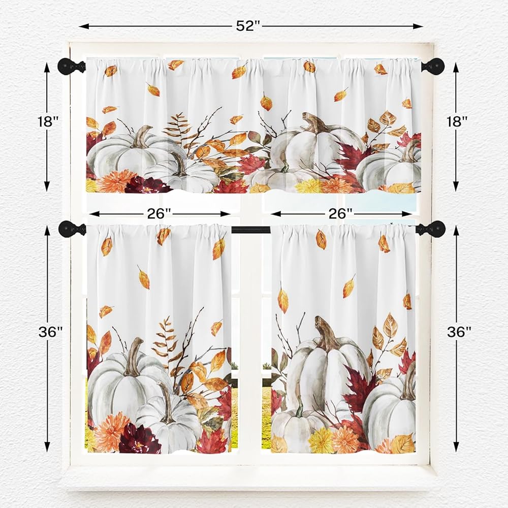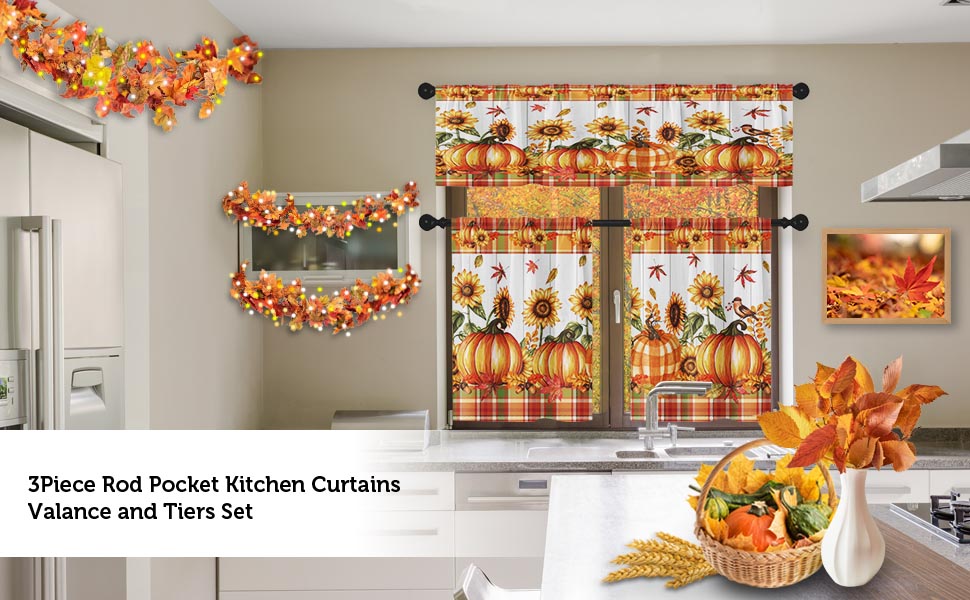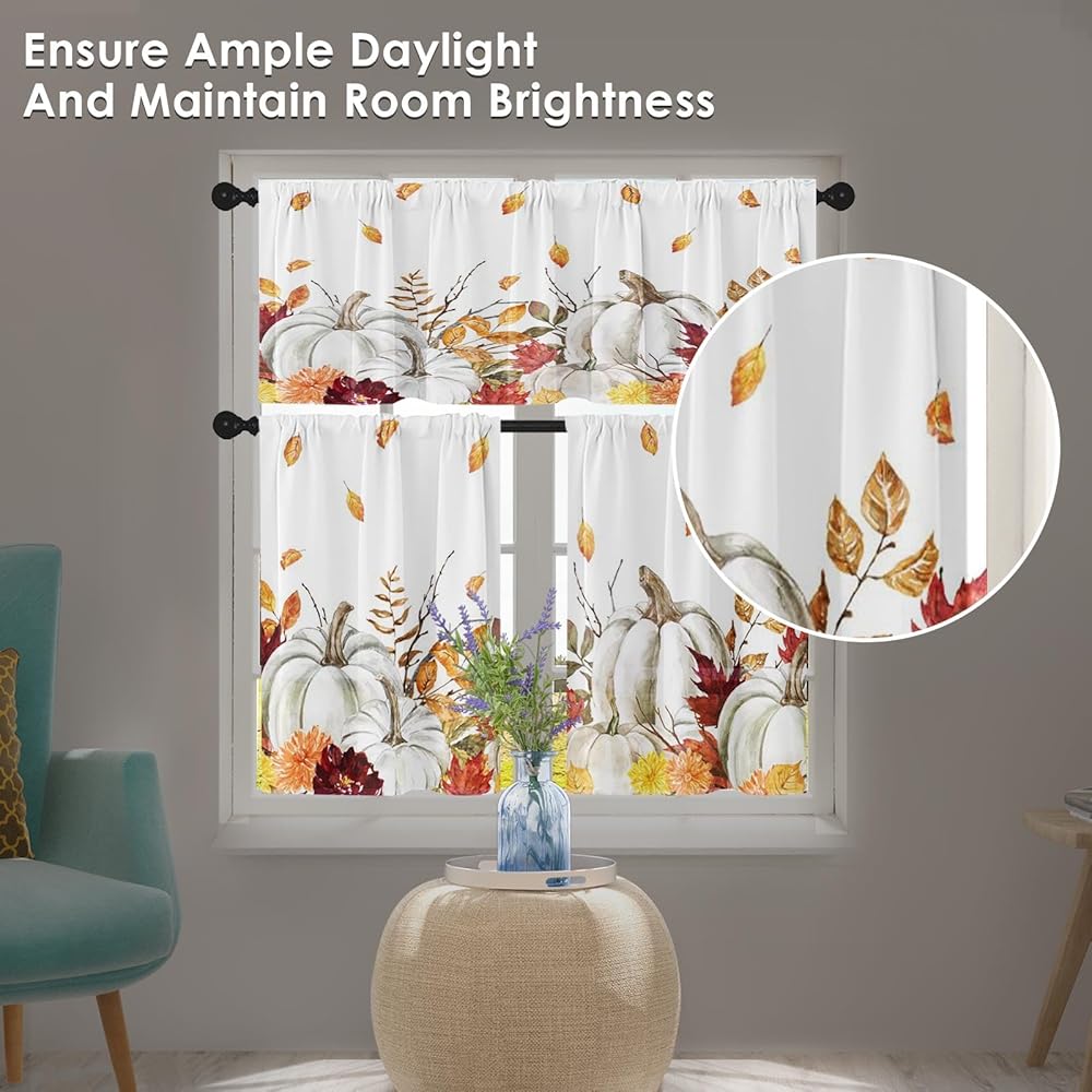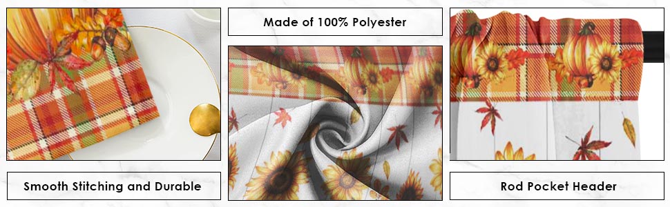 خامة عالية الجودة: مجموعة ستائر المطبخ والستائر الخريفية مصنوعة من البوليستر. المادة ناعمة الملمس ولا تتجعد بسهولة. آمنة وغير ضارة.