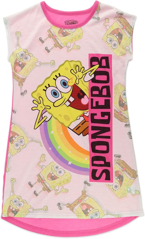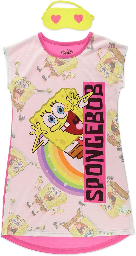 بيجامة سبونج بوب سكويربانتس للنوم للفتيات، طقم قميص نوم وقناع للعين، وردي، مقاس الأطفال الصغار 6/6X