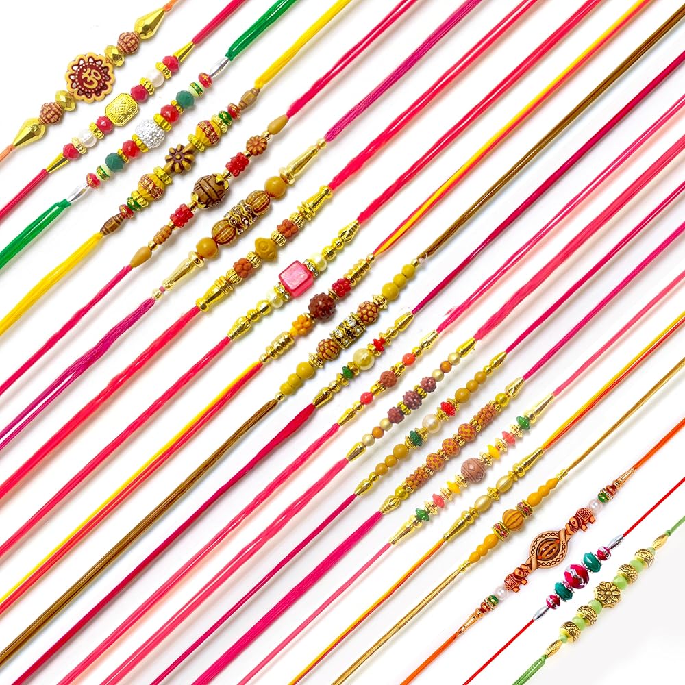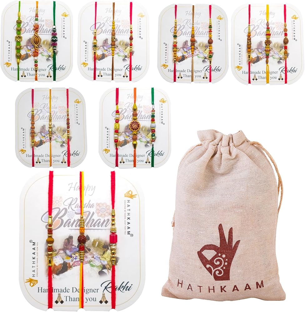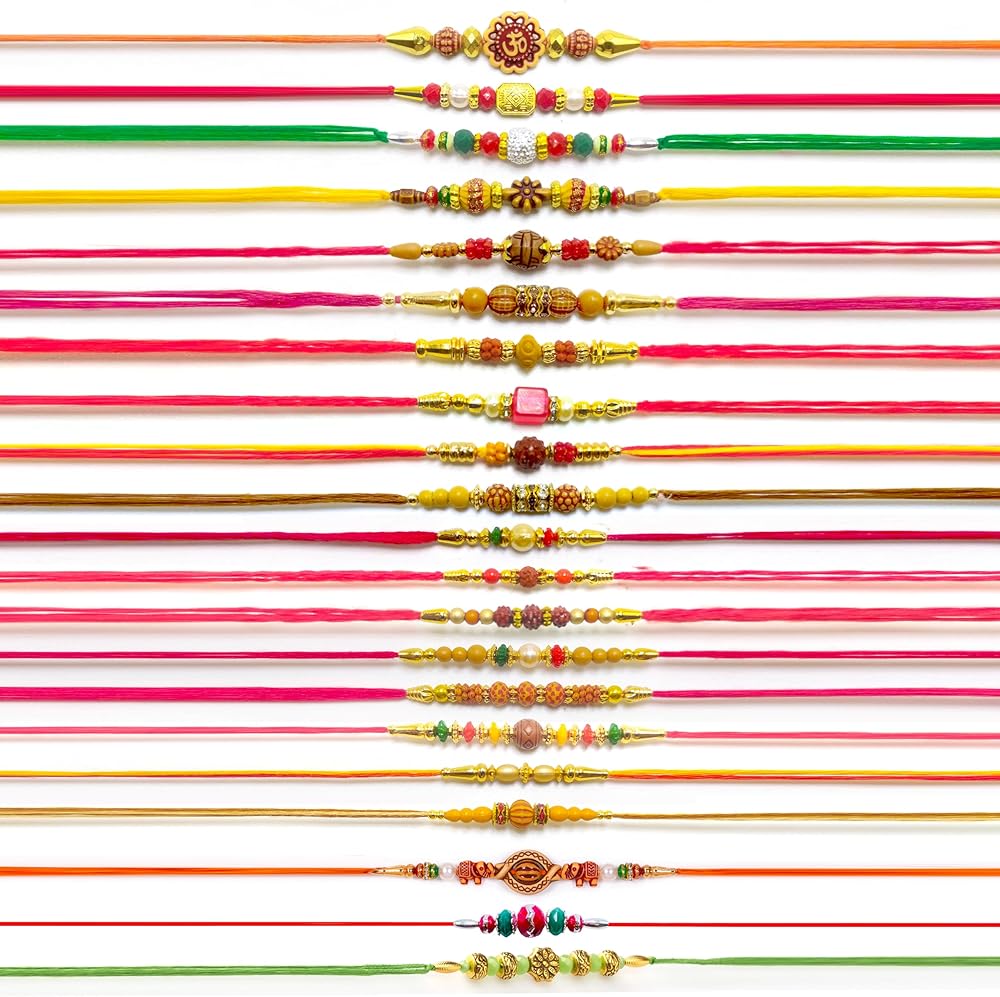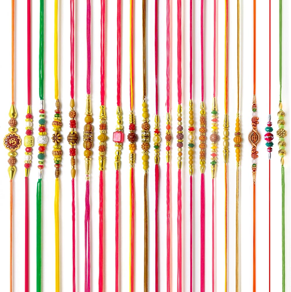 HATHKAAM 21 قطعة مصمم راخي للأخ مجموعة راخي التقليدية المصنوعة يدويًا لبهاي | سوار مع خرزة متعددة الألوان تناسب جميع أنحاء العالم بخيط قوي هدية راخي لراخشا باندهان