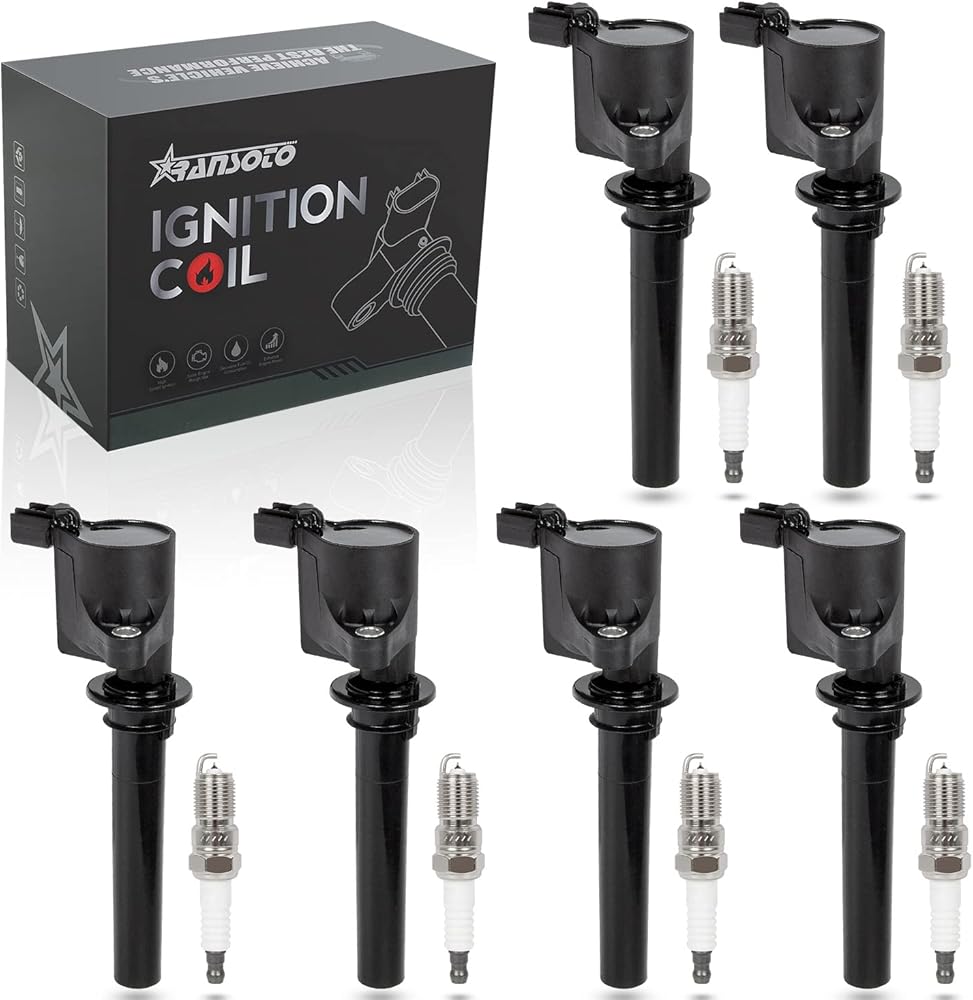 ملفات الإشعال RANSOTO وشمعات الإشعال إيريديوم متوافقة مع 2001-2007 Ford Escape، Five Hundred، Freestyle، Taurus Mazda Tribute Mercury Mariner Sable Montego 3.0L V6 يستبدل DG500 DG513 مجموعة من 6