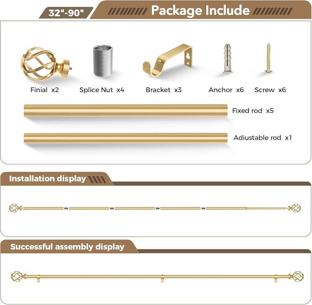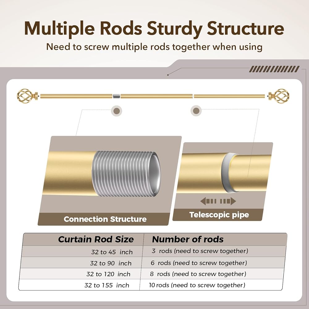 【هيكل قوي متعدد القضبان】قضبان ستائر IFELS للنوافذ من 48 إلى 84 بوصة تأتي مع 6 قضبان تحتاج إلى ربطها معًا. يبلغ طول كل قضيب ستارة 16 بوصة ومتصل بصمولة لصق. وميزة ذلك هي أنه لا توجد فجوة تقريبًا بعد التوصيل، كما أنها ناعمة وجميلة. صواميل التوصيل تجعل المفصل أقوى، لذلك لن ينحني قضيب الستارة.