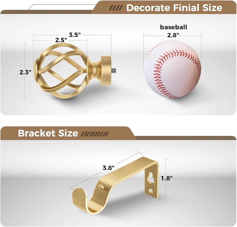 【قضبان ستائر قابلة للتعديل】تتميز قضبان ستائر IFELS الذهبية للنوافذ بهيكل قابل للتعديل، وتظل بعيدًا عن المشاكل الناجمة عن أخطاء القياس الصغيرة. قضبان الستائر مصنوعة بشكل جيد، وأنيقة وحديثة، وكانت اللمسة المثالية لغرفتك.