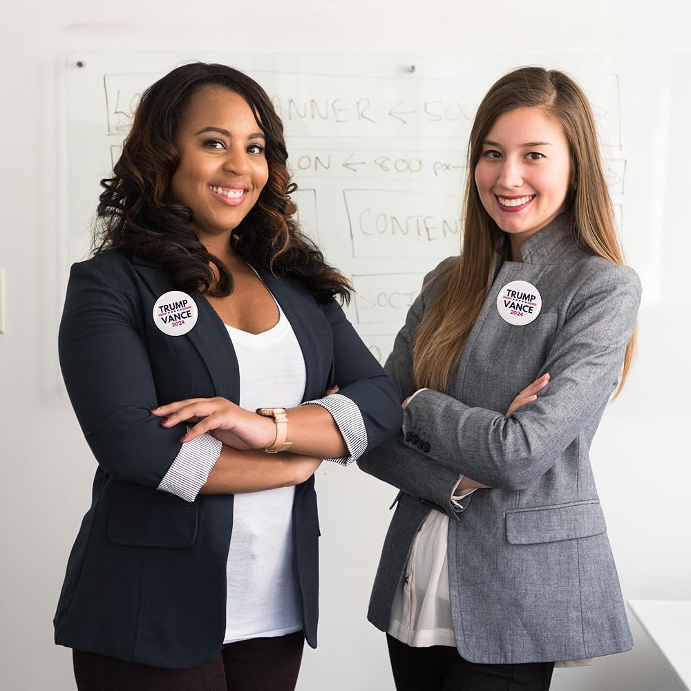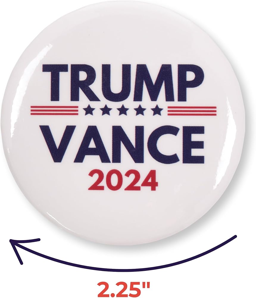 Support the 2024 presidential campaign with these White Trump Vance 2024 Buttons. This pack of 3 buttons, each measuring 2.25 inches, is perfect for showcasing your political stance. Featuring bold and patriotic lettering, these pins are great for rallies, events, or everyday wear.