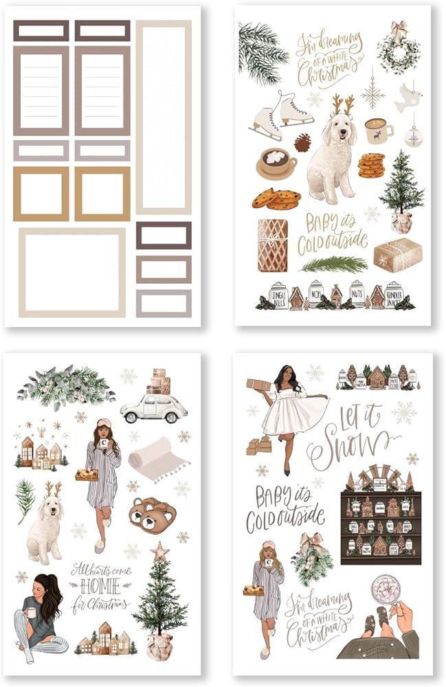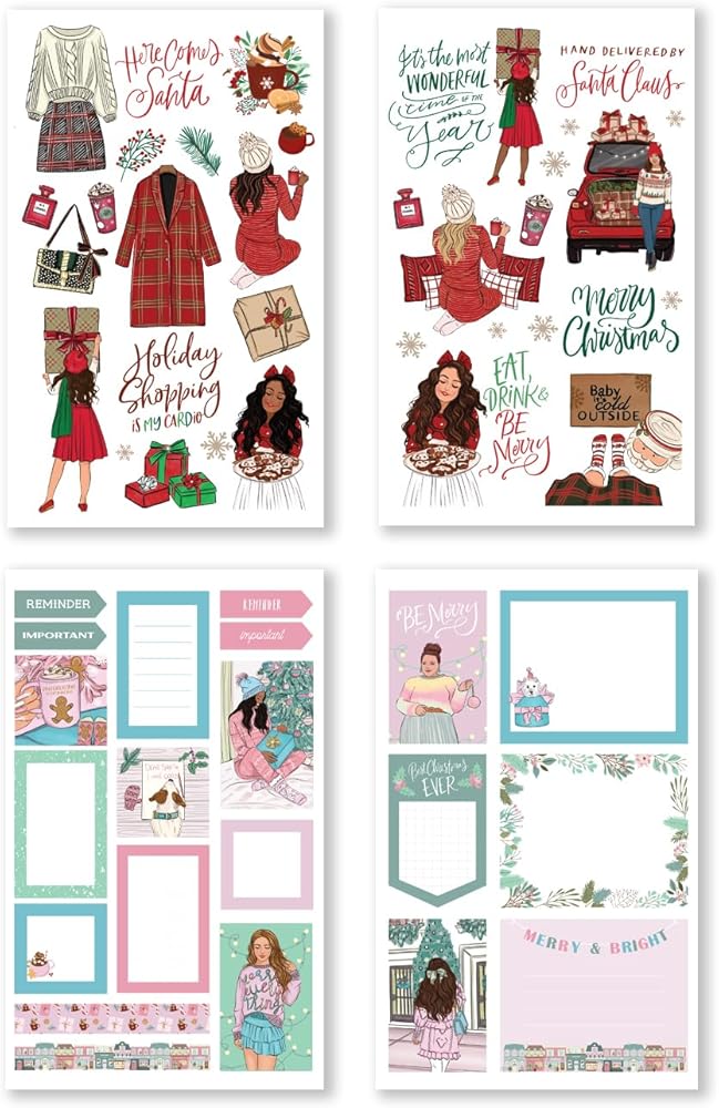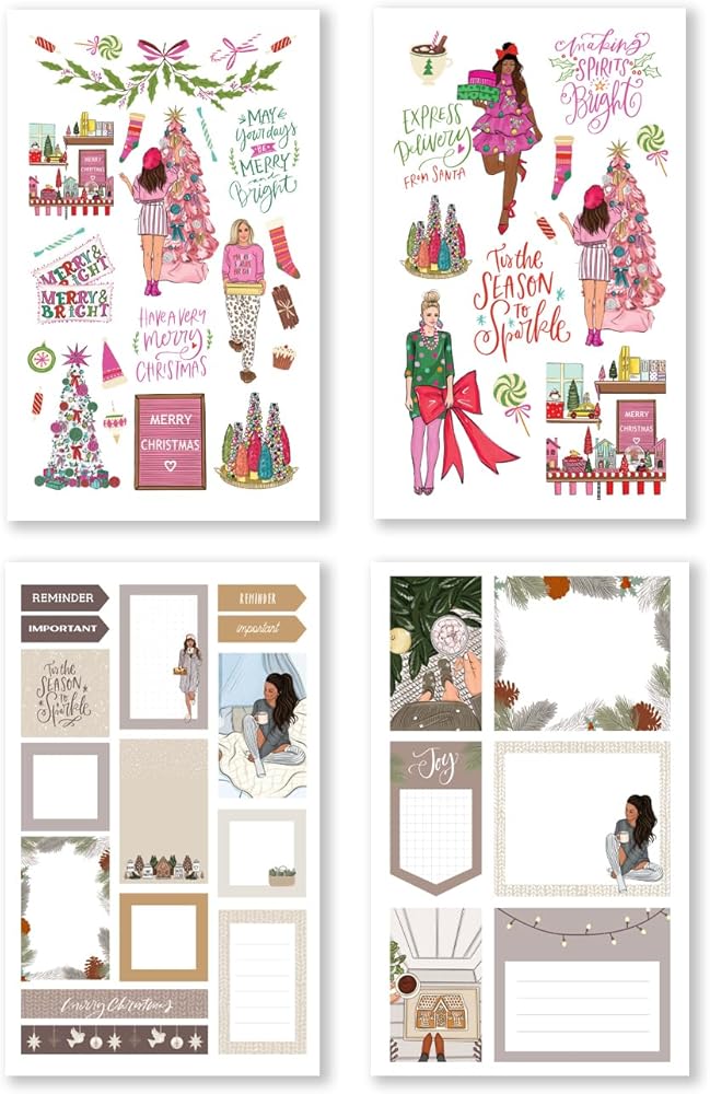 ملصقات مخطط الأعياد من رونجرونج، موضوع عيد الميلاد المجيد والمشرق للمخططين والمجلات - جودة عالية مرسومة يدويًا مثالية لجعل مخططك احتفاليًا - ملحقات سجل القصاصات - 24 صفحة