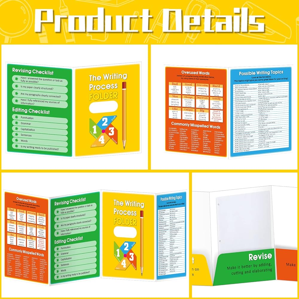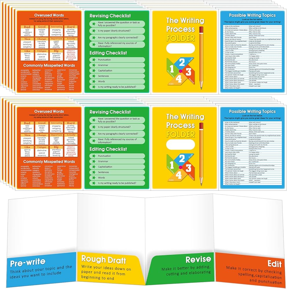 These writing process folders are nice organizational tools that also help students learn the steps of writing as they manually move drafts from one stage to the next stage, enjoy the fun of writing.