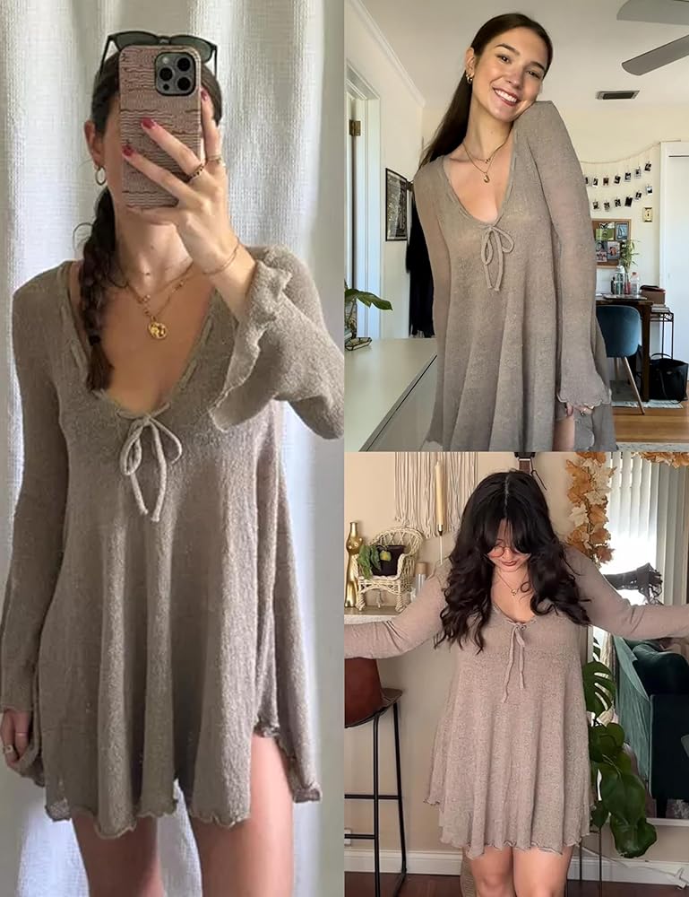 التصميم: يمكن ارتداء التصميم الشفاف والخط للفستان مع بيكيني أو قميص أبيض برقبة على شكل حرف V وطماق بيضاء تحته لإخفاء صدرك وخصرك بشكل مثالي وإظهار منحنيات جسمك الجذابة، ورقبة الملعقة مع مقدمة تضيف ربطة العنق لمسة من الأناقة إلى كتفك ورقبتك، وأكمام الجرس تجعلك تشعر بالراحة حتى في أيام الصيف الحارة
