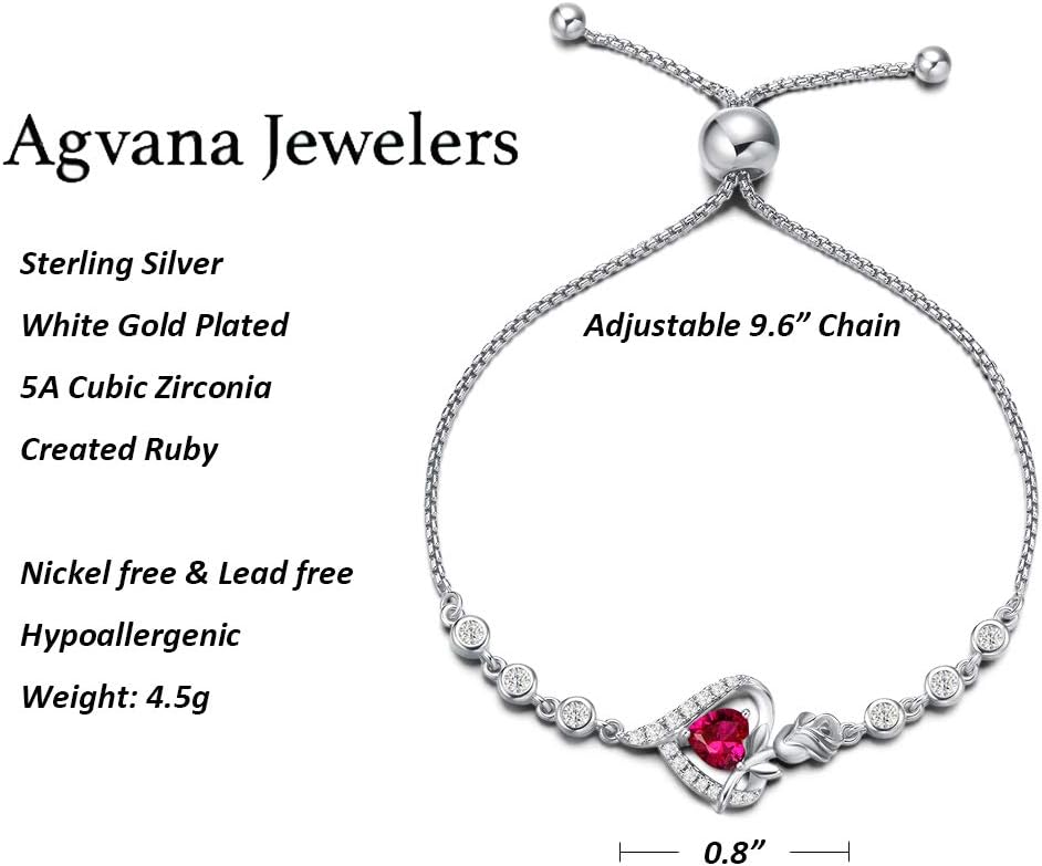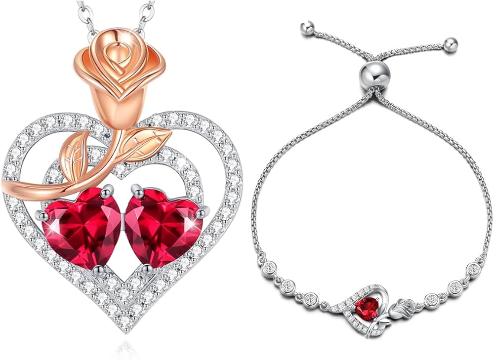 AGVANA المجوهرات الجميلة يوليو جوهرة روبي قلادة سوار للنساء الفضة الاسترليني تشيكوسلوفاكيا روز زهرة القلب قلادة الذكرى هدايا عيد ميلاد للنساء الفتيات لها