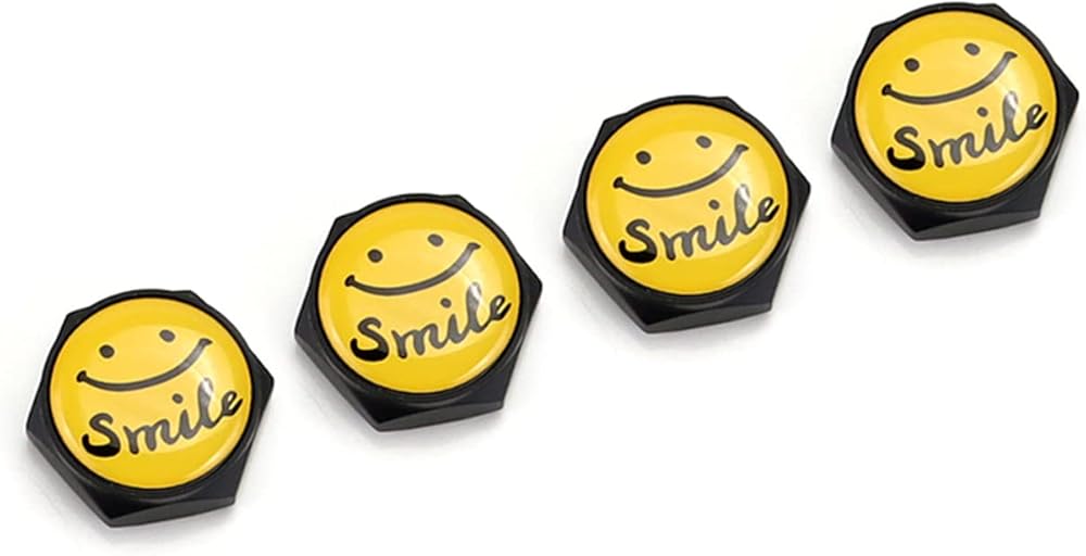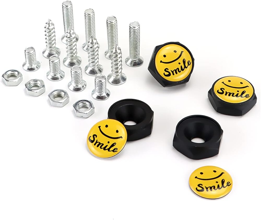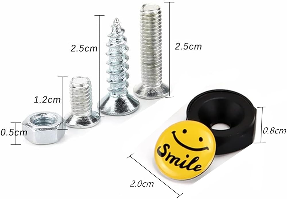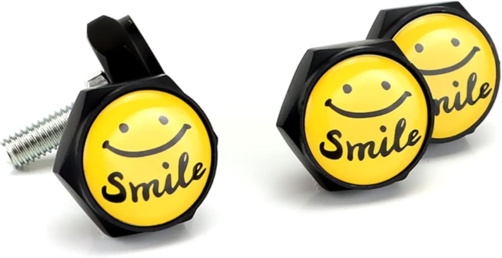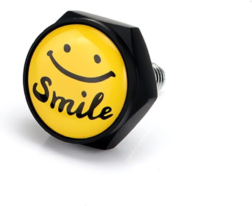 أغطية مسامير تثبيت لوحة الترخيص هذه مع شعار ابتسامة سعيدة، جميع الملصقات مطبوعة على جل الفينيل عالي الجودة من فئة الطائرات مع رسومات دقيقة، وهي إكسسوار سيارة مزخرف رائع للدراجات والسيارات والشاحنات والمقطورات.