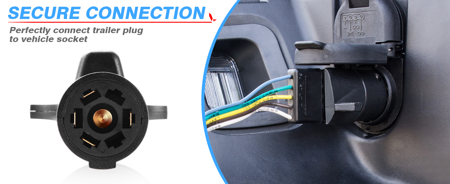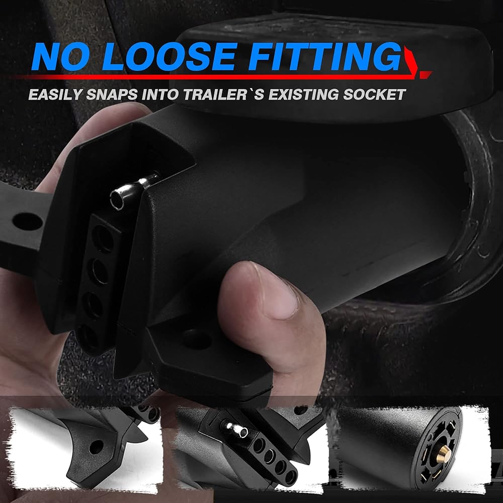 • اتصال آمن ومشدود - يتم تركيب موصل الشفرة المسطحة الدائرية القياسية ذات 7 اتجاهات بسهولة في المقبس الموجود للمقطورة ويثبت بأمان. لا توجد مساحة للمناورة، ولا تركيبات فضفاضة